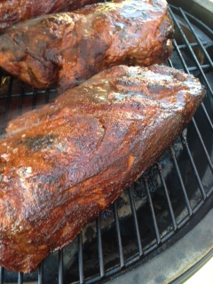 *  light coat of mustard and then applied a healthy coating of some on Bone Sucking pork rub.  wrapped in foil and placed in refrigerator overnight. about 12 hours before my cook.