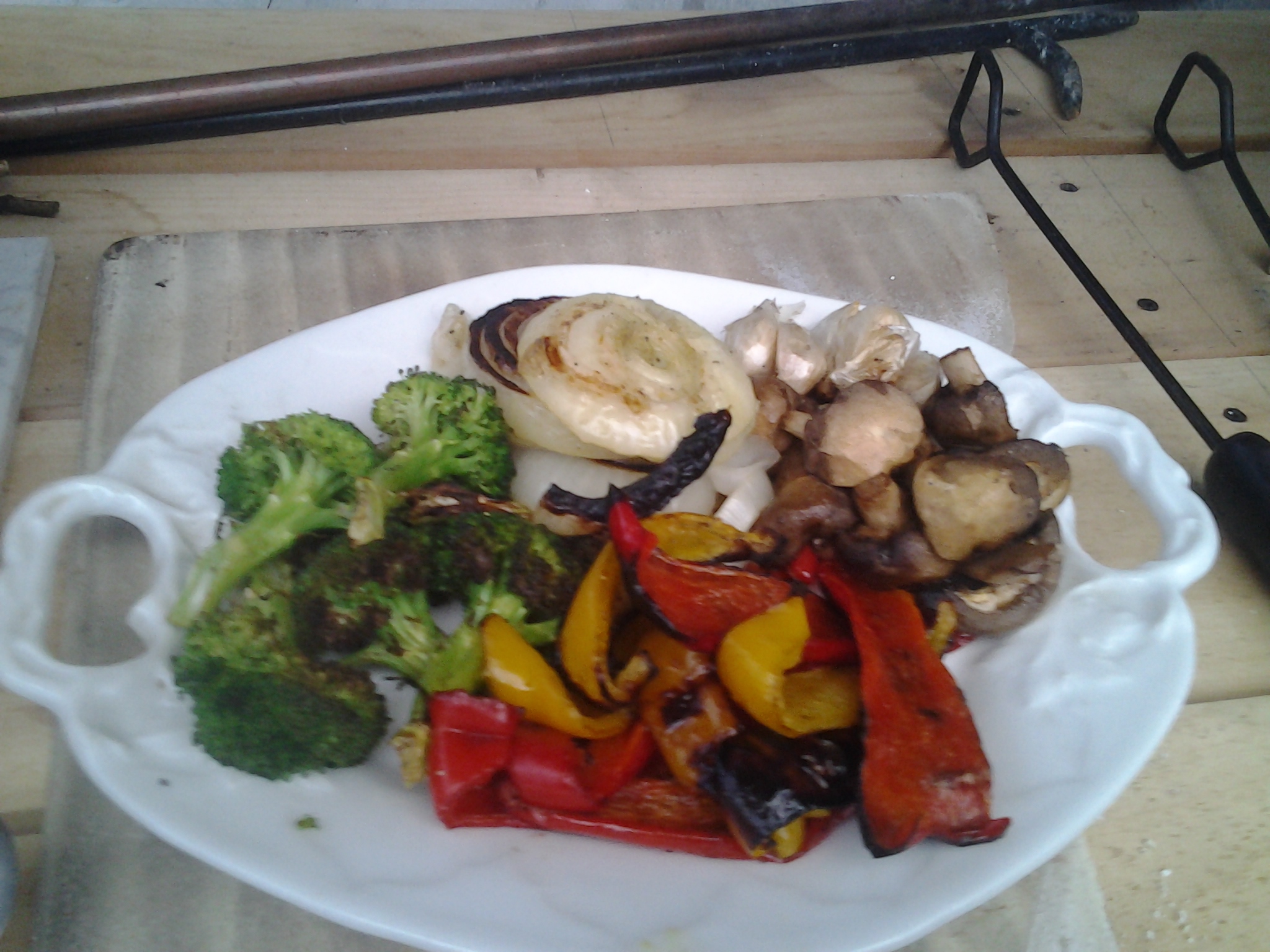 Been meaning to grill for weeks. Tonight I finally got it together. London Broil and veggies. And Joe Bear looking out for scraps.