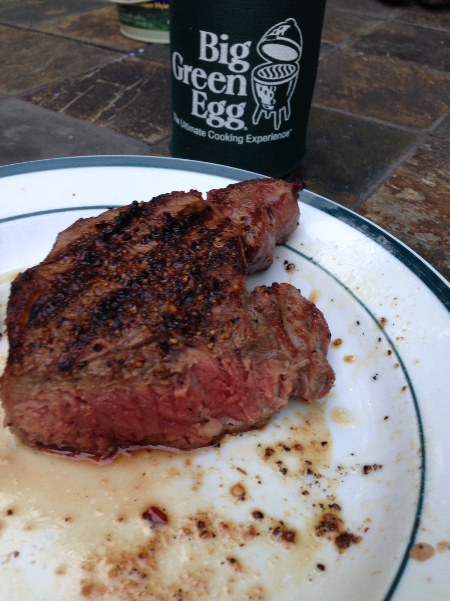 So I did my first steak tonight and it was good. It was about an 1.5" ribeye. I cooked it at 650 degrees 2min a side, flip, 2min and one more flip for 2min with the egg shut down. The pics don't look near as good as what most of y'all post but hey it was my first time and I'm still learning! Any tips, thoughts or advice would be nice!