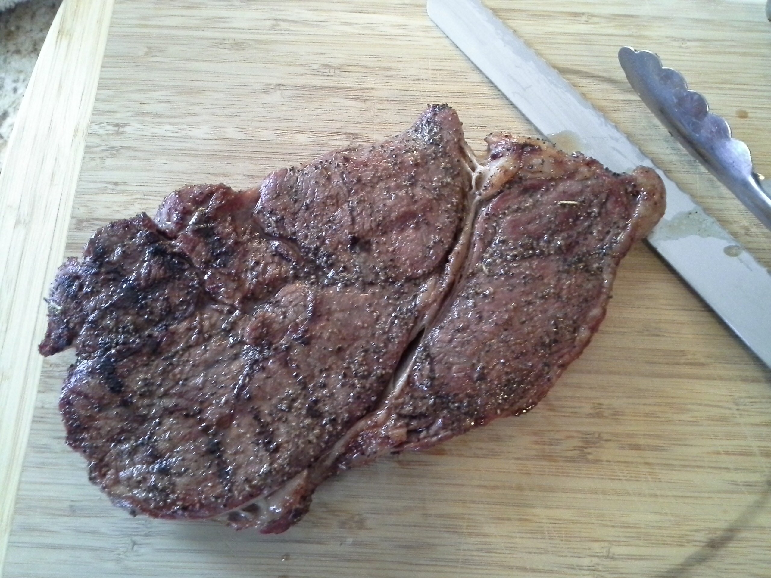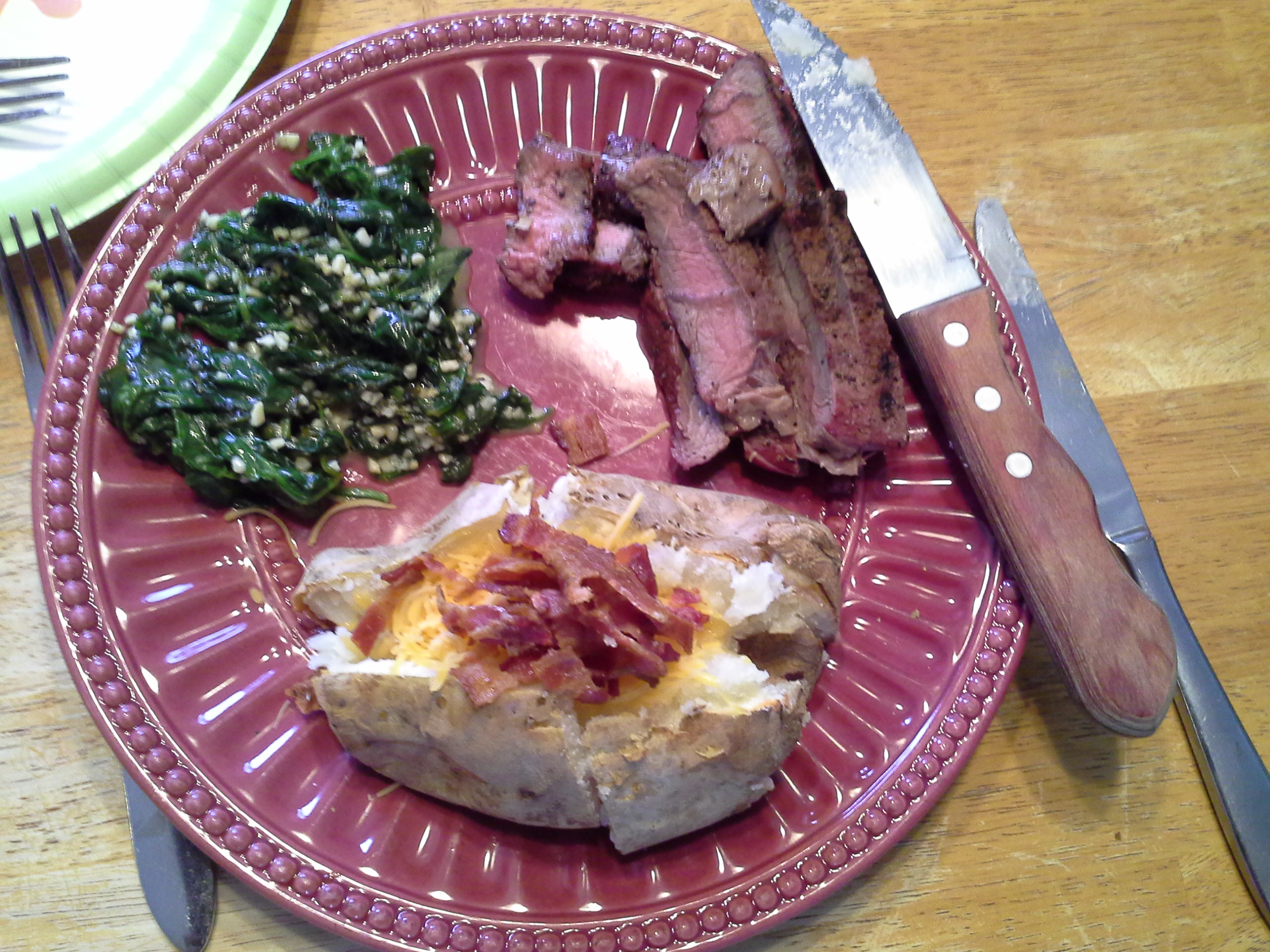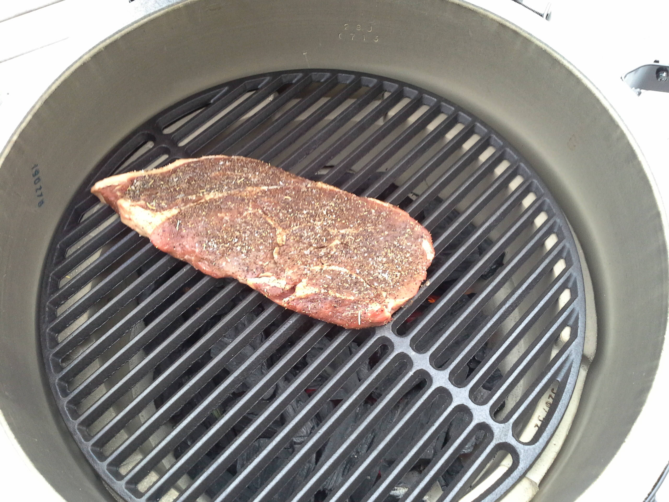 Steak came out pretty good rubbed it with tasty licks red meat rub. Swmbo thought the rub was a bit strong but she had seconds!! Cooked it direct at around 400 on the cast iron grate, served it with sautéed spinach and a baked potato. I know this is old news to all of you but I cannot beljeve how easy the temp was to regulate the first time!! I will have a worse grilling problem soon! Thanks for all the great recipes and advice!!!