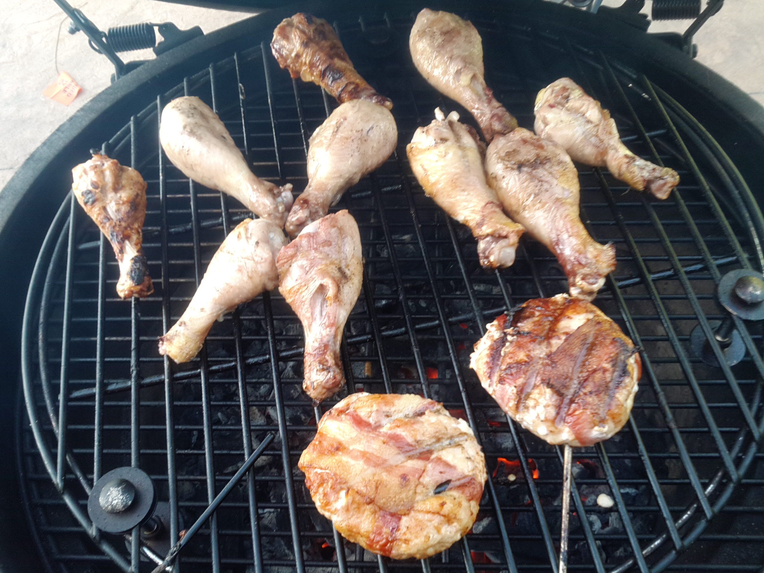 I'm cooking legs and chicken grillers and flipping them every 15 minutes or so. Bone breast or spatchcock I doing flip. I cooking raised direct.XL, WSM, Coleman Road Trip Gas GrillKansas City, Mo.