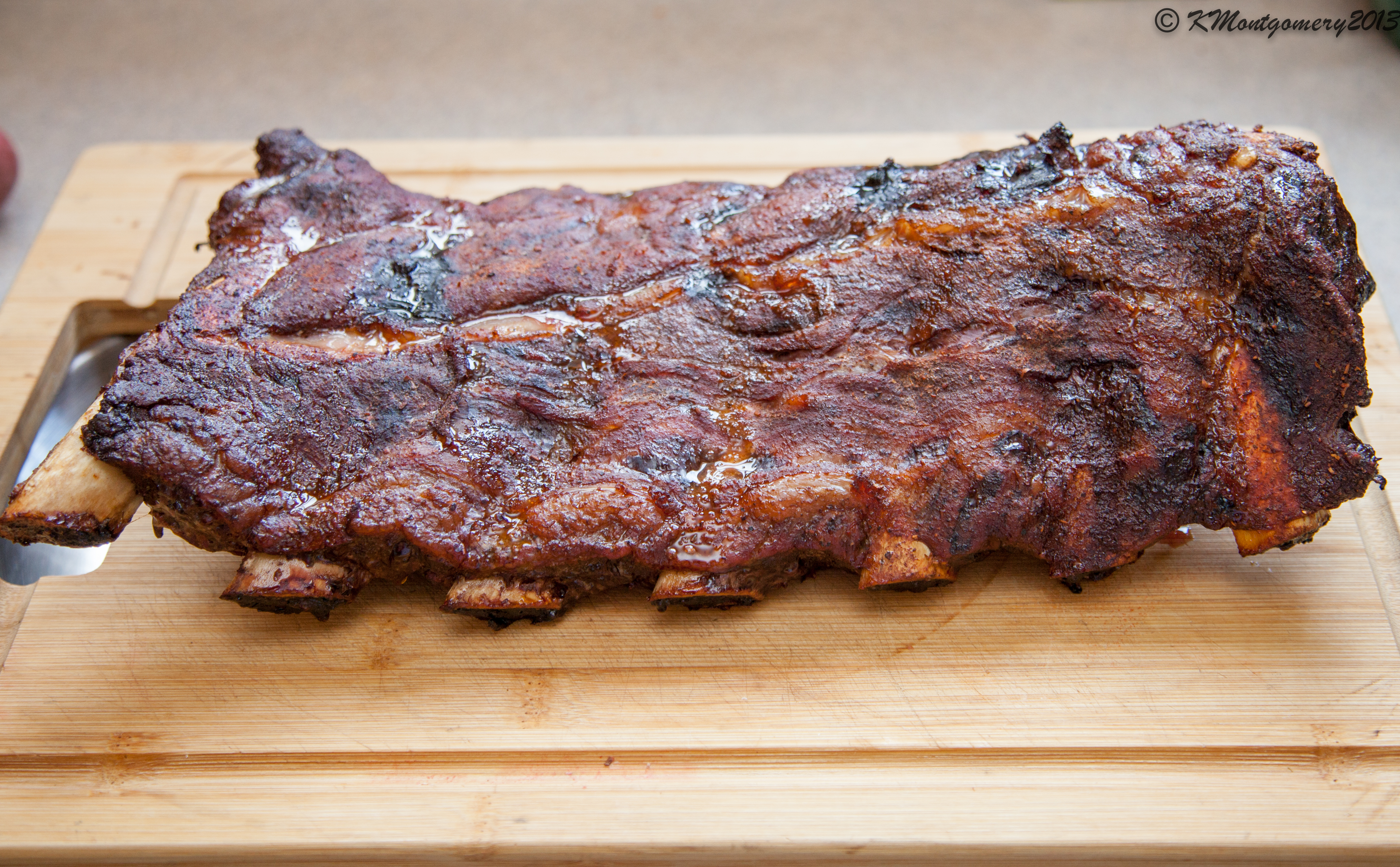 Here it is, I gotta say this was outstanding, might have a hard time going back to pork ribs? Pulled them at 186-190 and they were so tender, barely had to chew!Came out perfect and didn't last long with the group! Thanks to all who who helped along the way!Large BGE 2011, XL BGE 2015, Mini Max 2015, and member of the "North of the Border Smokin Squad" Canadian Outdoor Chef from London, Ontario, Canada