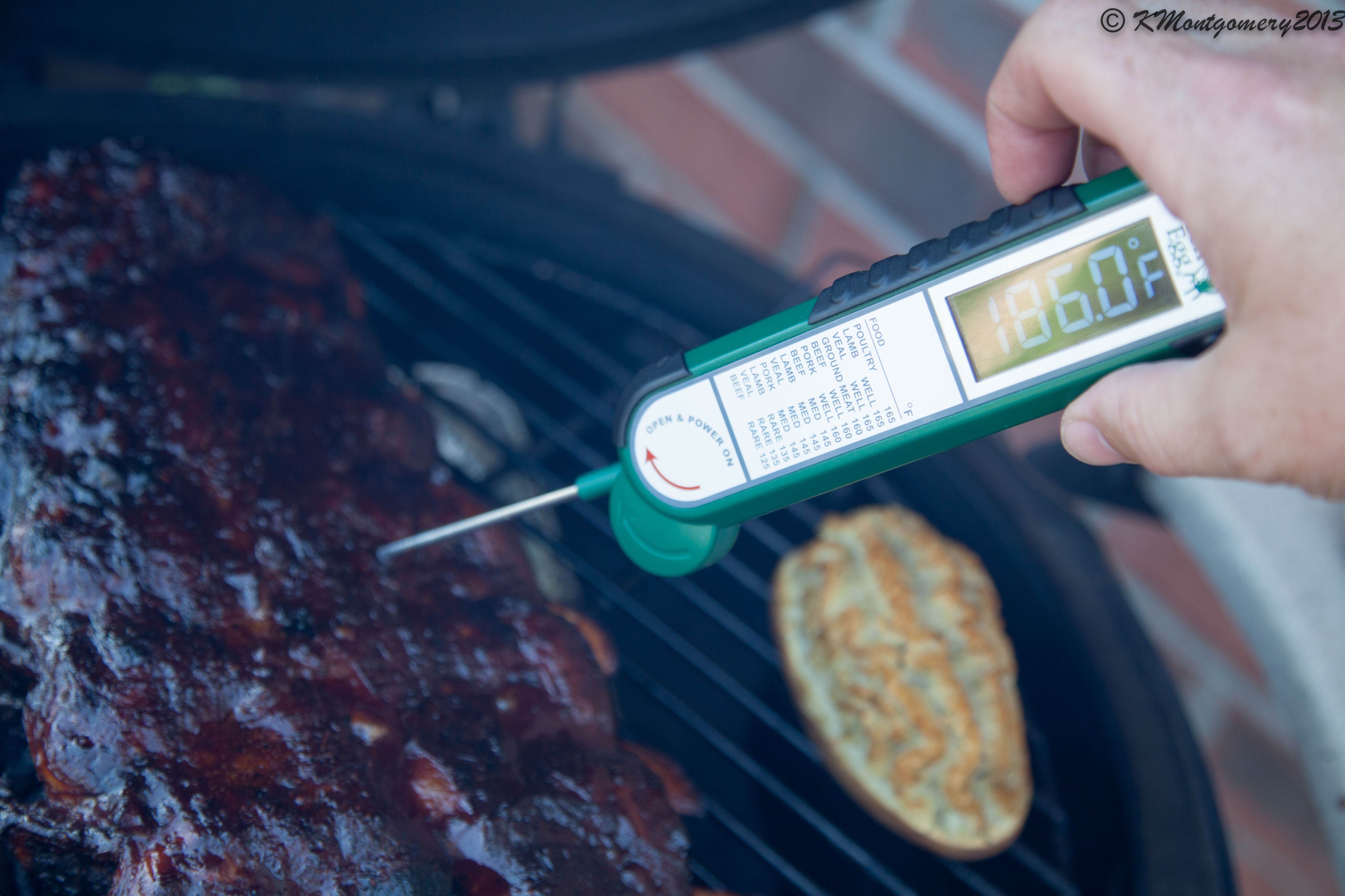 I am cooking some large beef ribs right now and they are already at 86° from 50 in a half hour. I now that may not be right since it is hard to get a good temperature on ribs while cooking. I am indirect on a raised grid so my grid and dome are about the same at 270ish. Don't need them to 4 to 5, should I lower and slow down or let it ride? I'm looking for 145 to be done?XL, WSM, Coleman Road Trip Gas GrillKansas City, Mo.