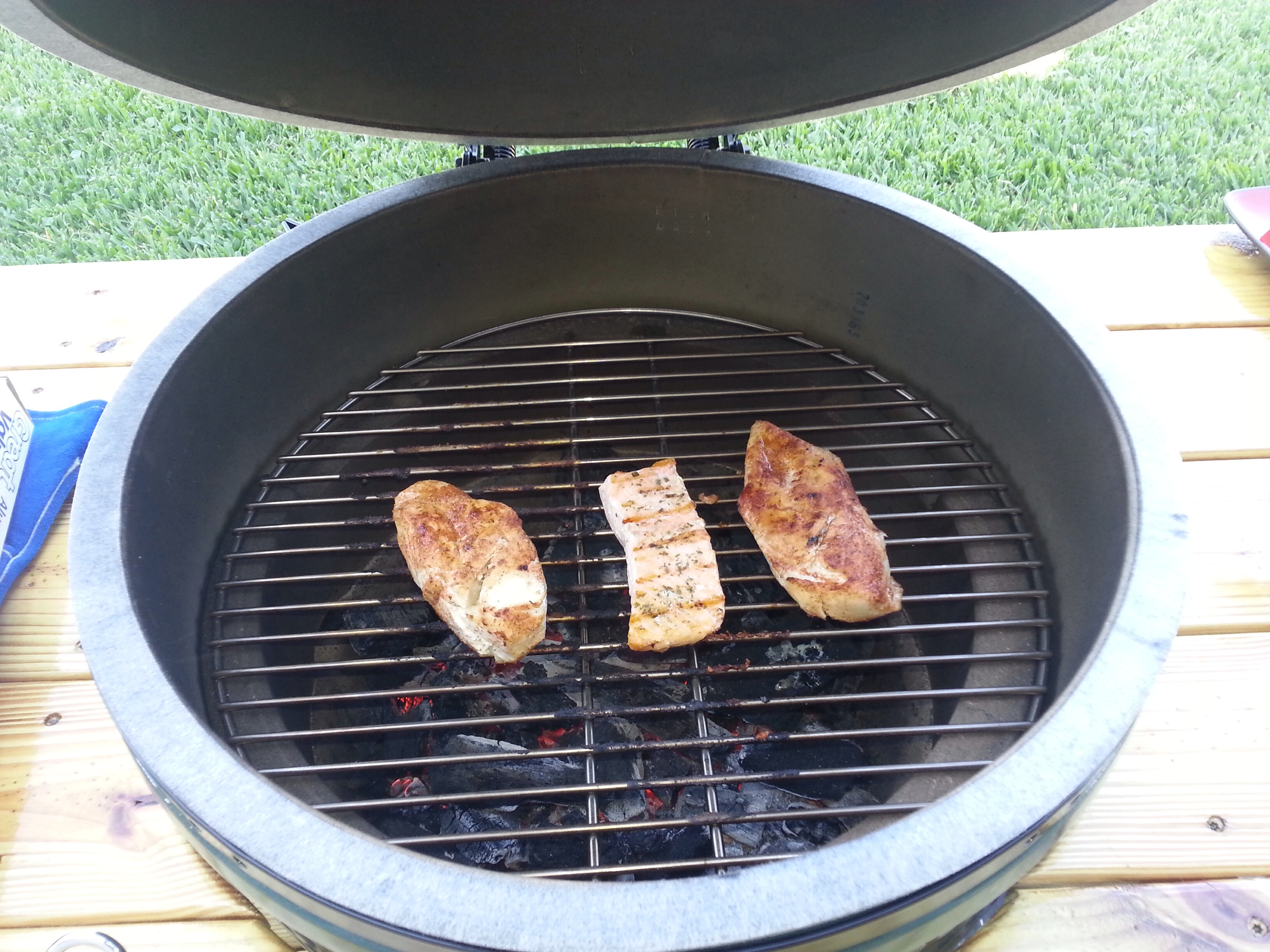 Welcome aboard my friend. Chicken and salmon. Nice combo. Enjoy that egg and keep on cooking brother. Just for the record I love salmon off of the egg. Great job.Location- Just "this side" of Biloxi, Ms.