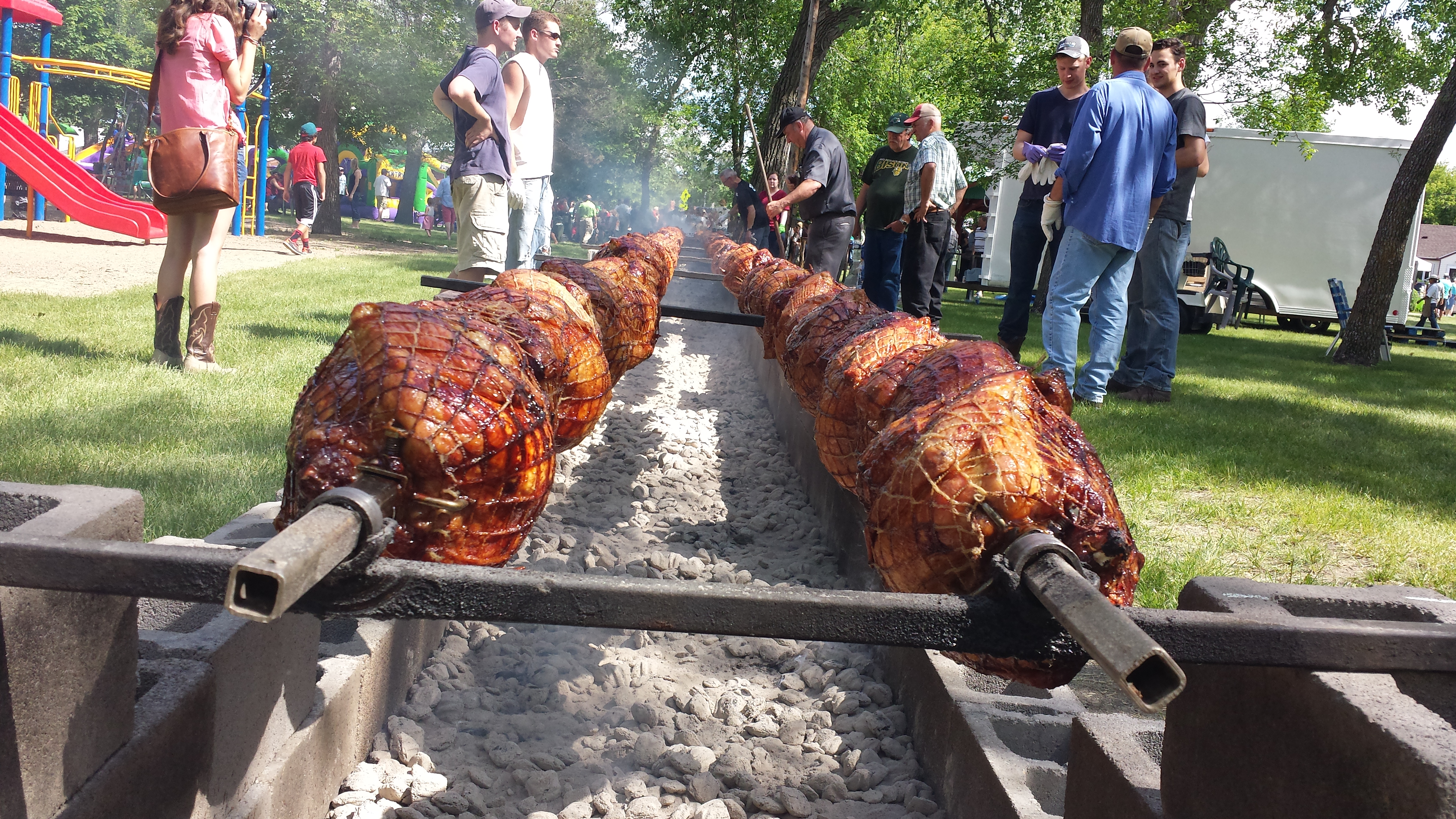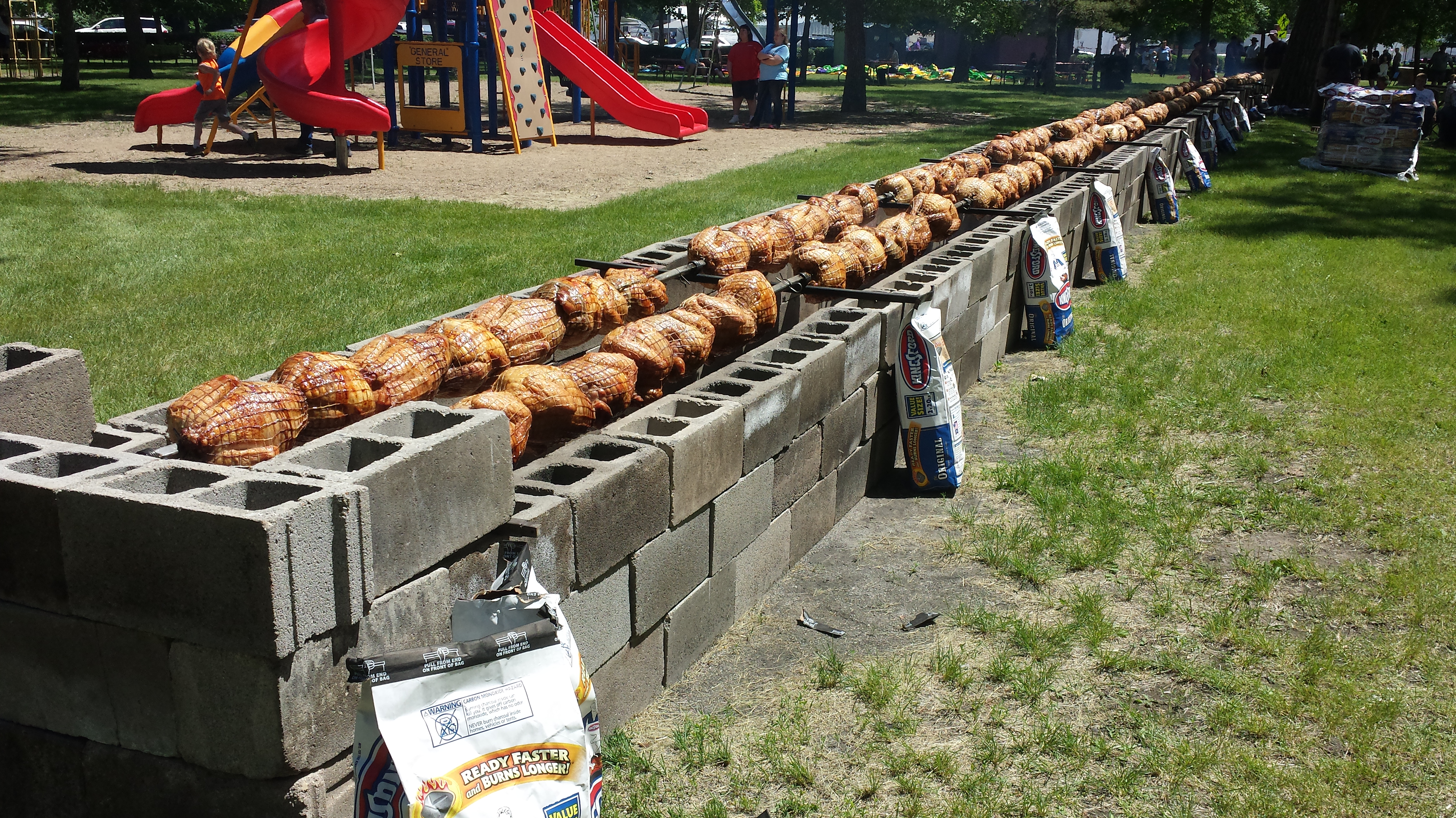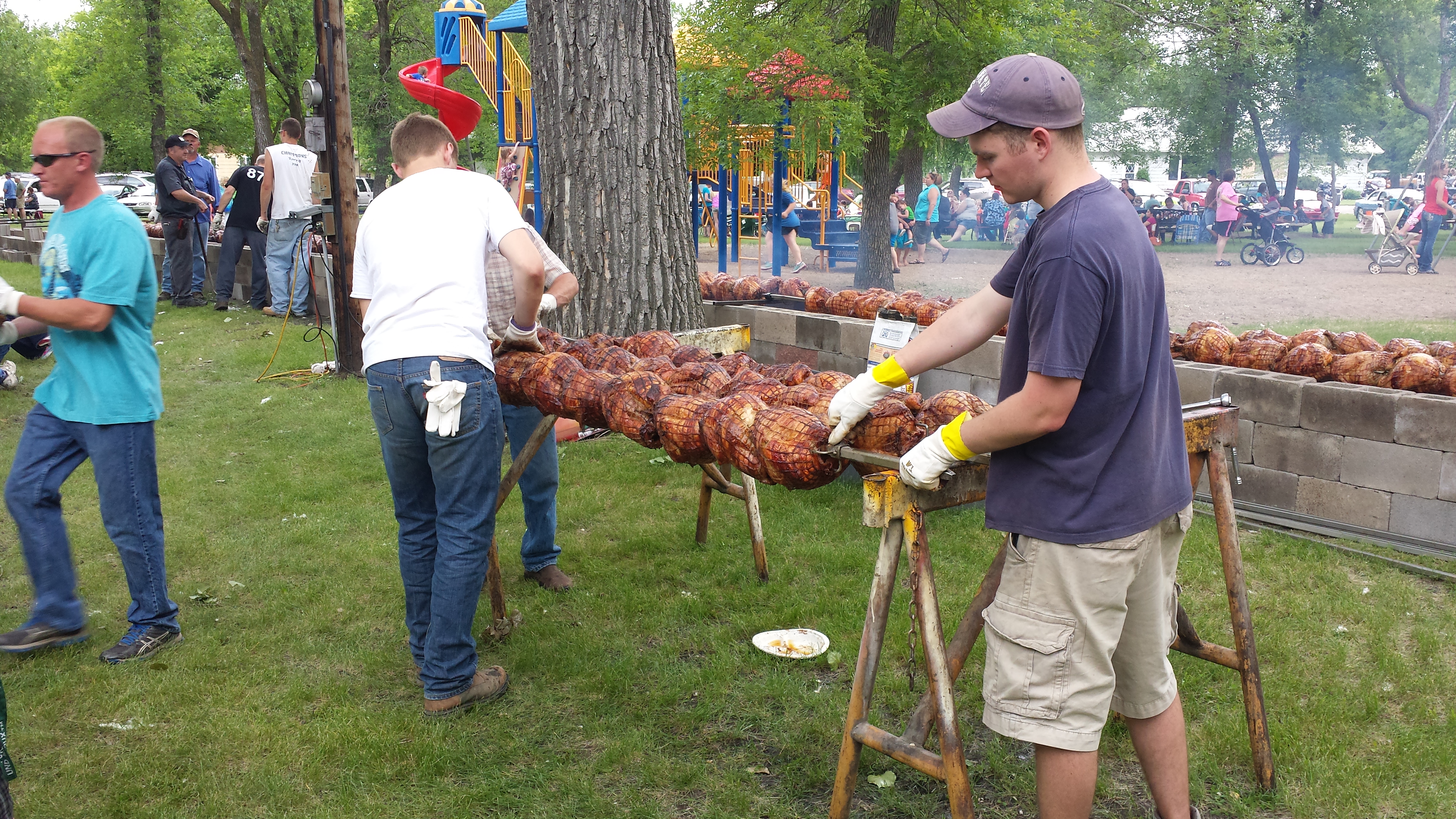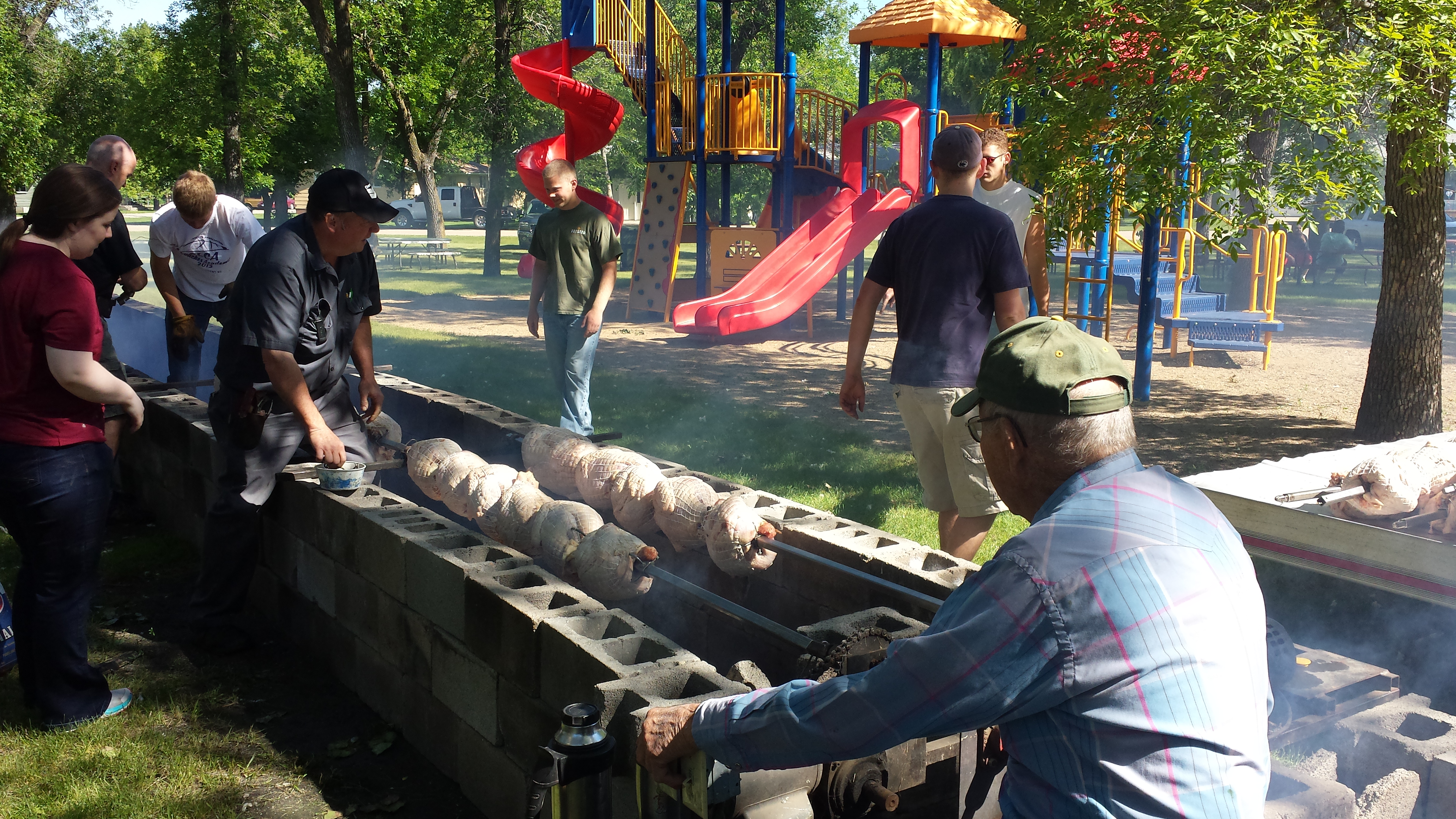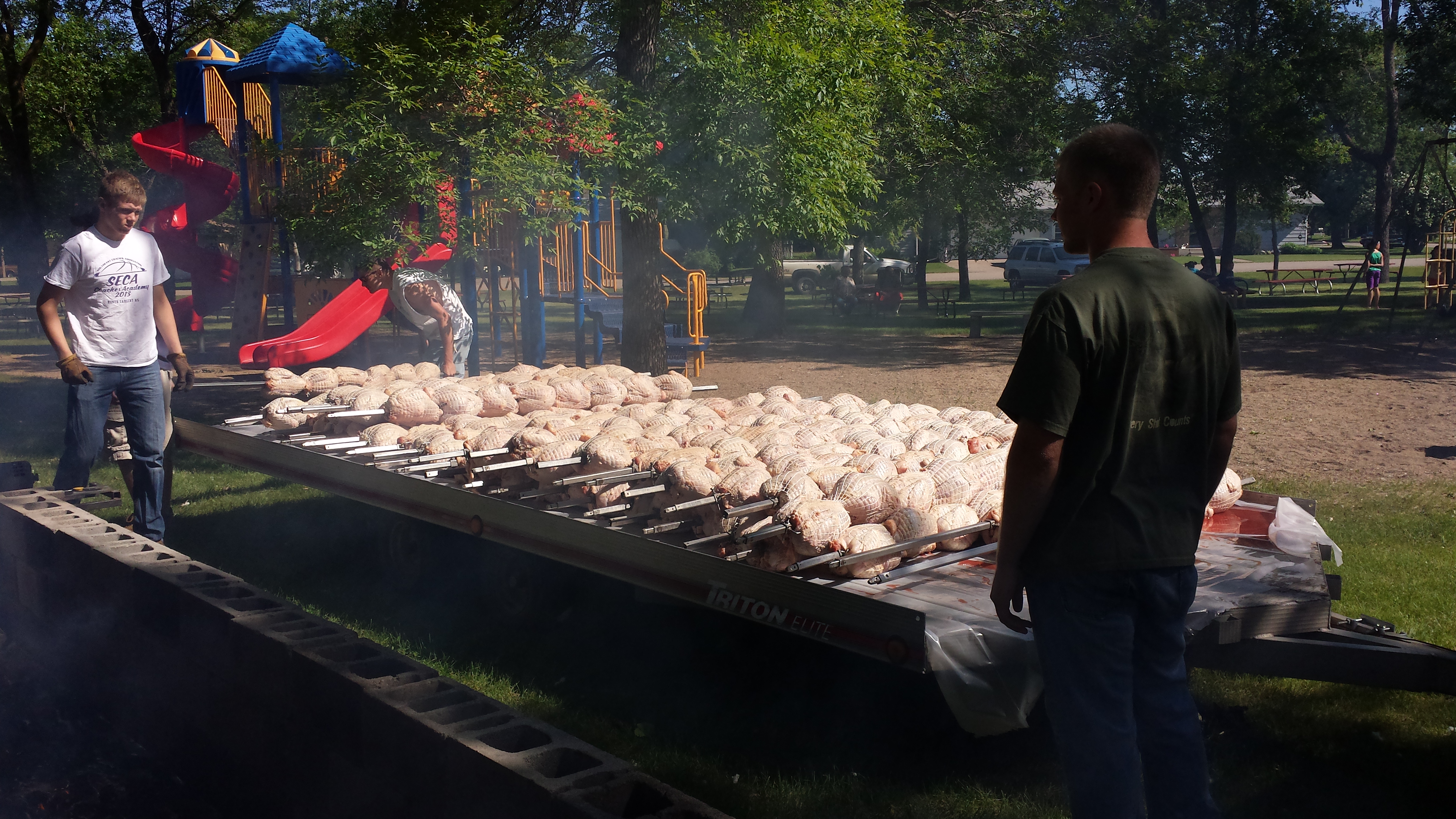 Russ (Egger: RAH) invited us out to the world's largest turkey bbq in Aneta, North Dakota. I was in awe watching Russ and his crew cook 312 turkeys! I get nervous as hell cooking 1 turkey, I couldn't even imagine doing another 311 at the same time! Watching him add/remove cinder blocks to control the heat and add charcoal to certain areas that need to finish at different times is simply amazing. He is one seriously talented individual. A true artist!