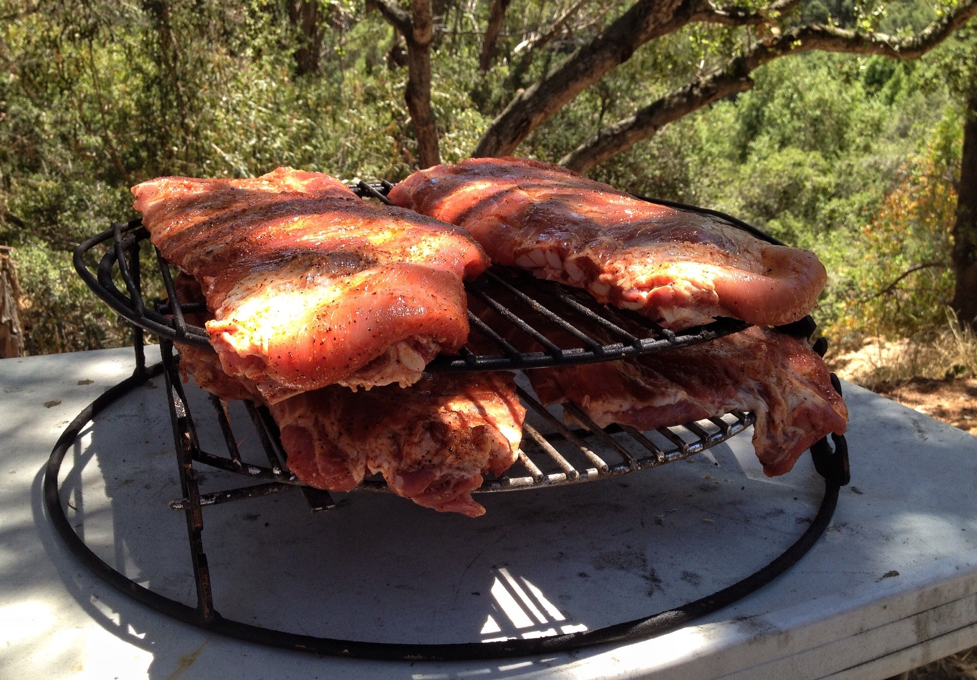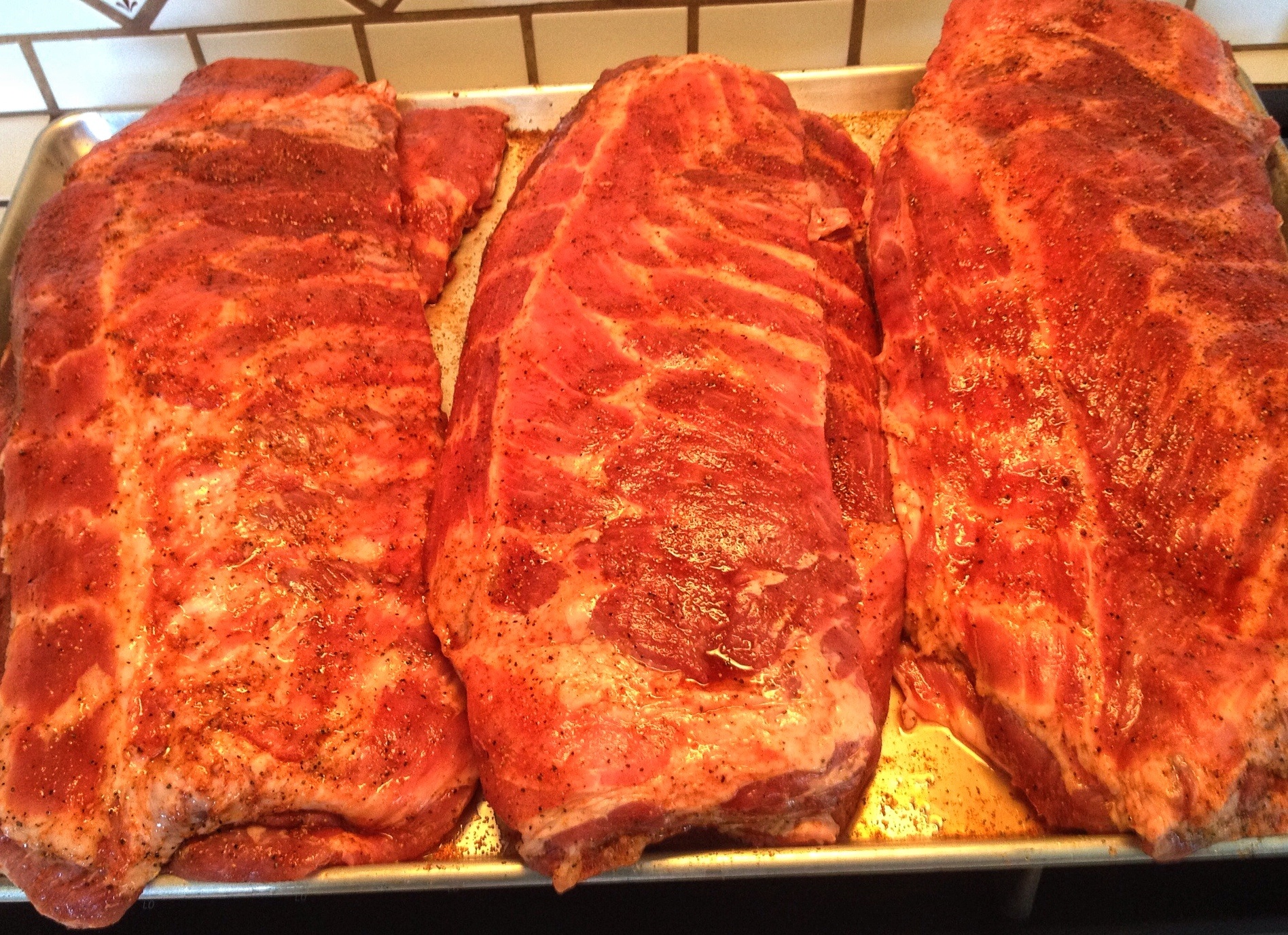 Made a trip to business Costco this morning, picked up six racks of spareribs waiting about 4 1/2 lbs per rack. These will be served along with tri-tip and chicken for a birthday party at my son's house