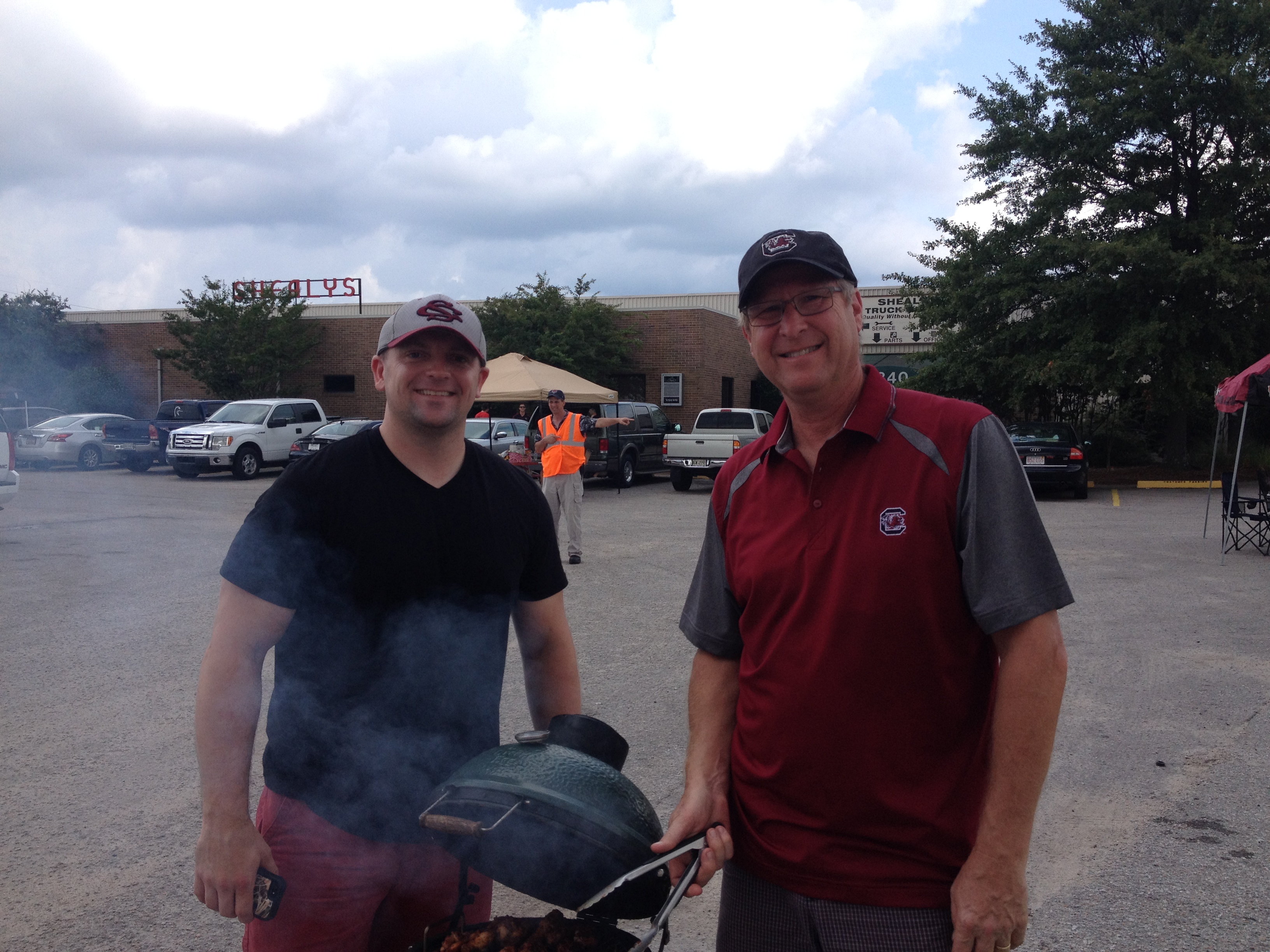 Thanks Craig, the Dyals are great people, they showed us true southern hospitality. My daughter is a sophmore at USC and when here friends found we would be tailgating with our Green Eggs they made sure they didn't miss the opportunity, I had cooked for them at my house this summer. I brought the small Egg and Craig had is Mini and both were busy until game time. Craig made some fantastic spinach artichoke dip, Baby Backs with a great rub, chocolate chip cookies and I did Wings rubbed the day before 1/2 with Tsunami spin and 1/2 with Swamp Venom. ABT's with cream cheese and LeGruyere and Fat Man's Love rub and wrapped with bacon. We finished with a big win over the #6 Georgia Poodles. I look forward to cooking with Craig again at he Eggtoberfest. Here are more pictures._________________________________________________Don't let the truth get in the way of a good story!Large BGE 2006, Mini Max 2014, 36" Blackstone, Anova Sous Vide