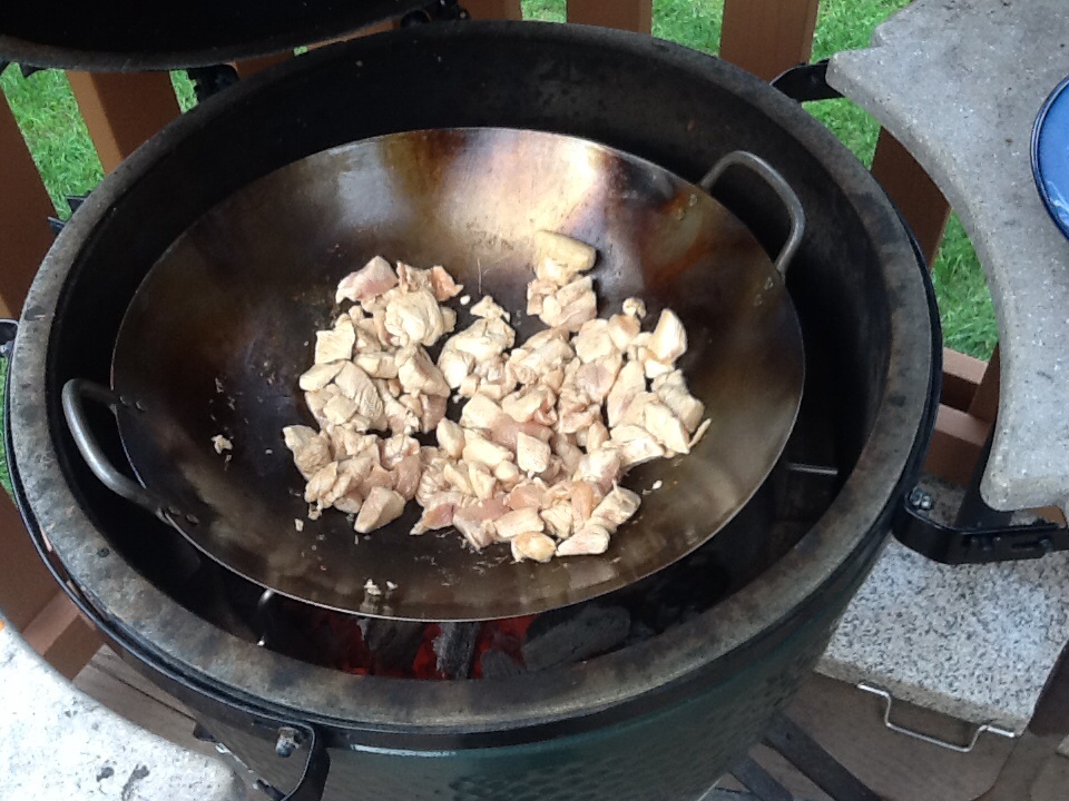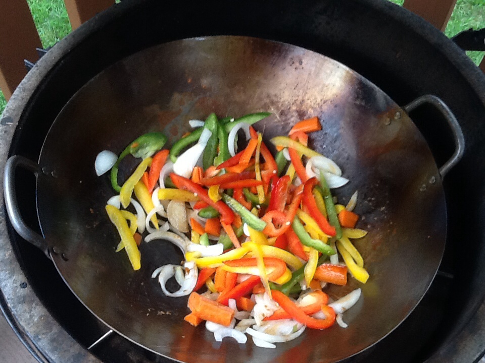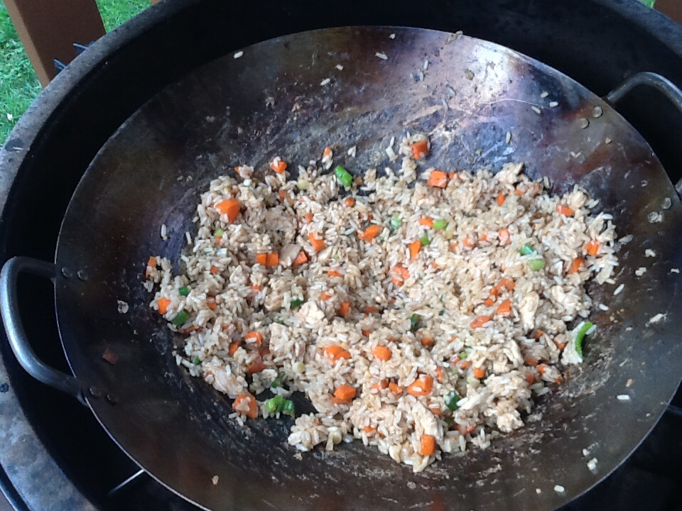 So received my wok from CGS this week and seasoned it, so thought I would try stir-fry. Cooked chicken then removed and halved Added peppers, onions and carrots to wok then added chicken until done Added pre-cooked and cooled rice with eggs to wok Added veggies and chicken Not only was this great it was so much fun to cook!