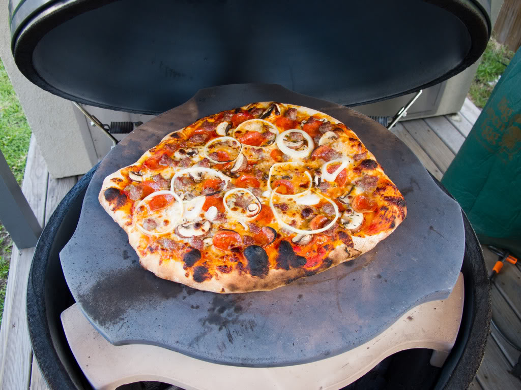just got my new extra large Big Green Egg pizza stone works great. Pizza pics,not to bad for a beginner lol