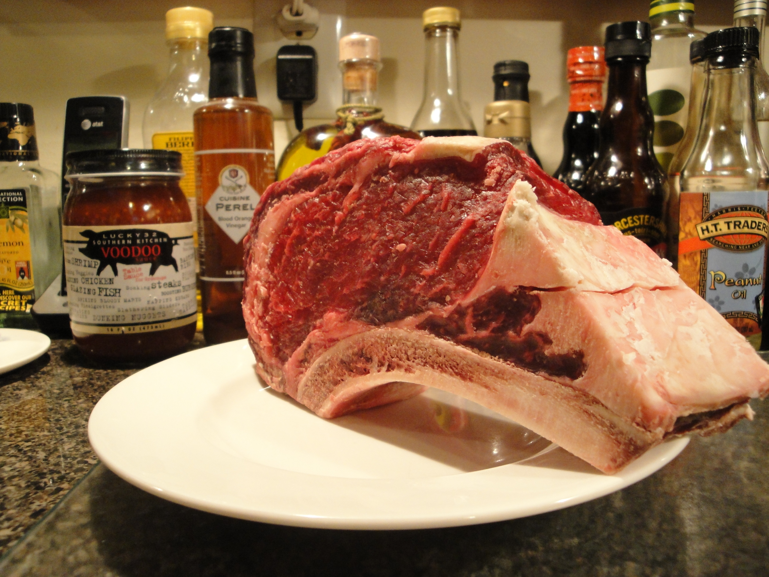Scored this beaut at our local store..A dry aged bone in Rib eye..Got my name all over it..All have a great Sunday.