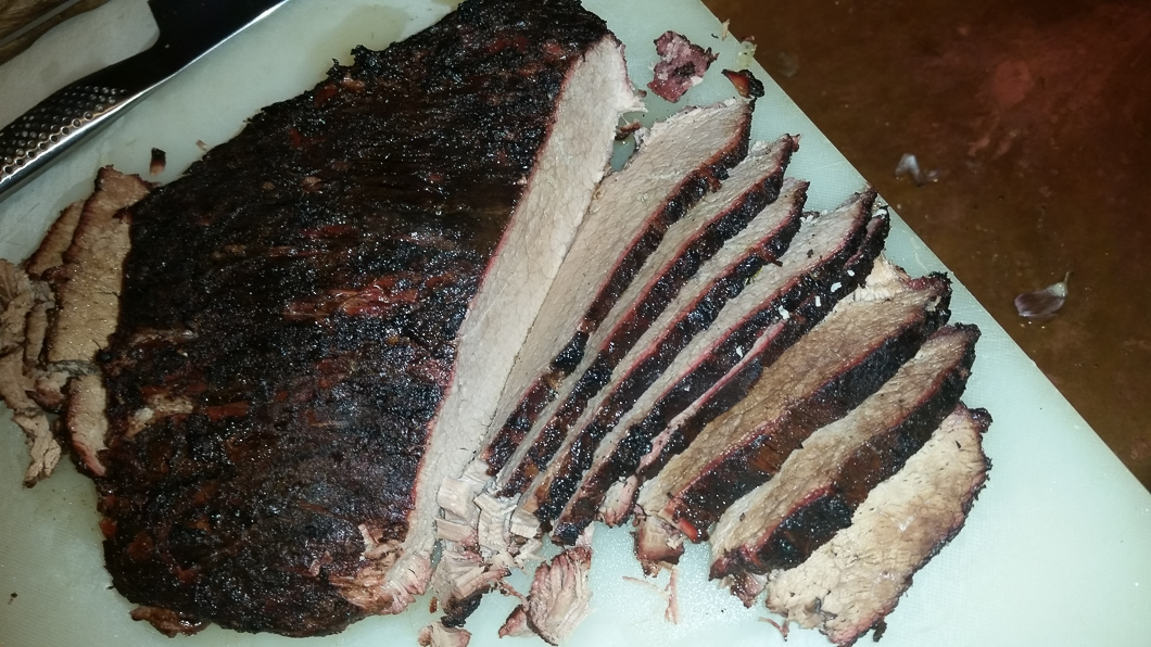 Here we go on another adventure. Bought a 4.5 lb flat this morning and have it rubbed up with Mickeys rub cooked for 2.5 hours at 275F got to 155 internal temp pulled crutched and back on the grill to finish. Then I will cambro that thing for an hour or two then crisp the outside on me BGE direct for a few minutes. Will let you know when finished.