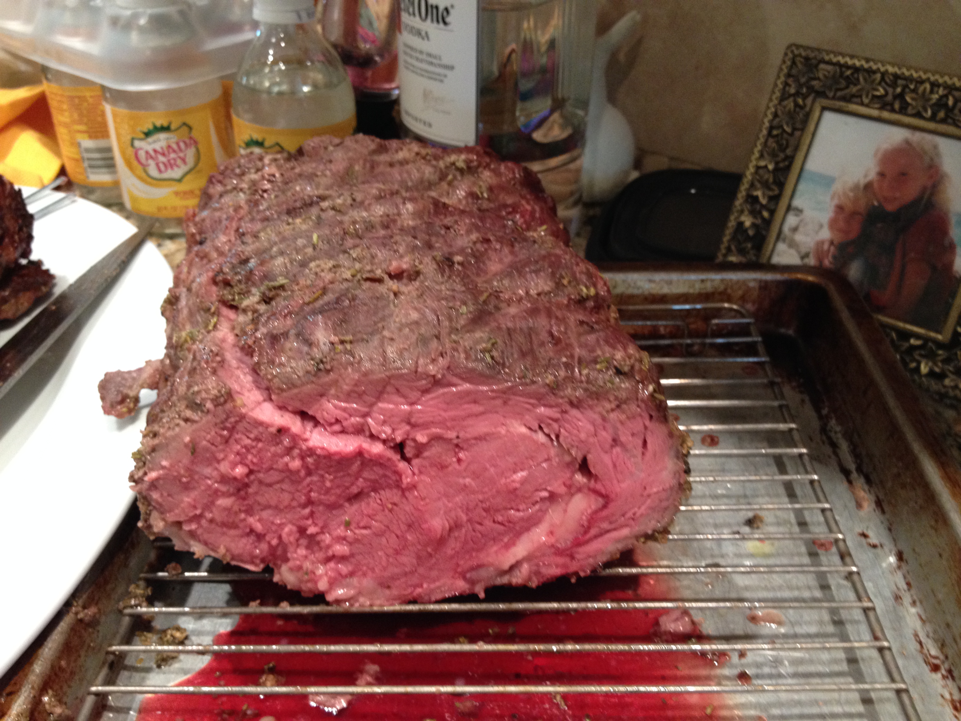 Whole Prime Rib, trimmed and rubbed with a rosemary, garlic, kosher salt, cracked pepper and extra virgin olive oil paste, slow roasted at 250, pulled at 128 IT, rested for 20 minutes._________________________________________________Don't let the truth get in the way of a good story!Large BGE 2006, Mini Max 2014, 36" Blackstone, Anova Sous Vide