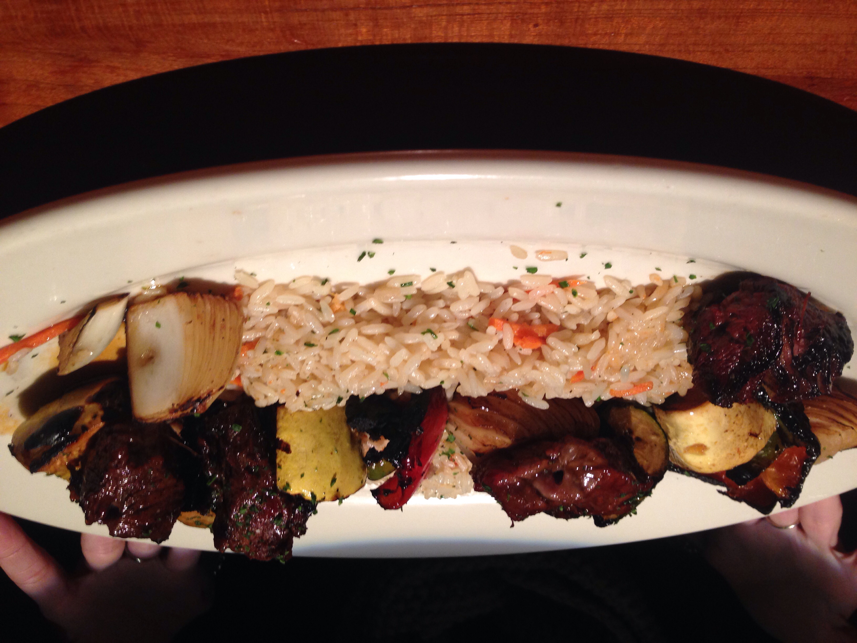 Tonight SWMBO took me out for my birthday which is tomorrow. J. Alexander's in Birmingham. One of the best steaks I've had at a restaurant. Also, NYO Mac and Cheese. NYO stands for Not Your Ordinary. This was perfectly cook. Erin got Filet Kabobs, all of these veggies were marinated in their signature Steak Maui marinade. Both dishes were fantastic.