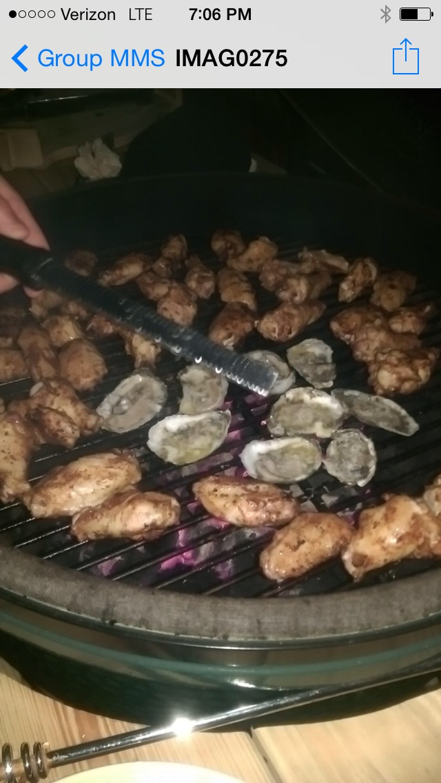 At a friends, and firing up the xl for some moose, chicken wings and oysters!!!