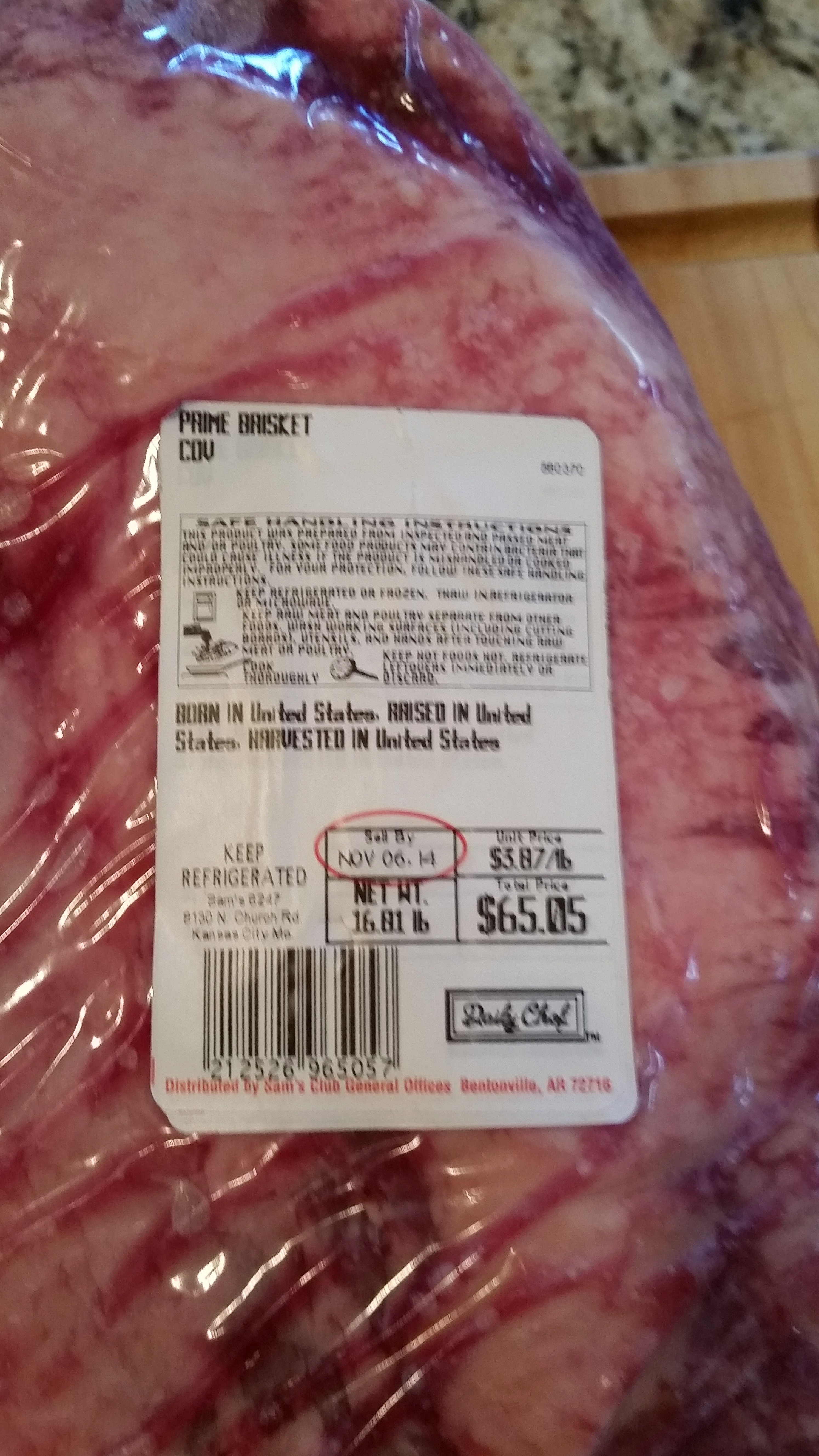I have found a 16.81 pound prime brisket at Sam's Club before at $3.87 a pound. I didn't realize it tell I got home. I was just looking for the biggest one they had. That was a nice score.