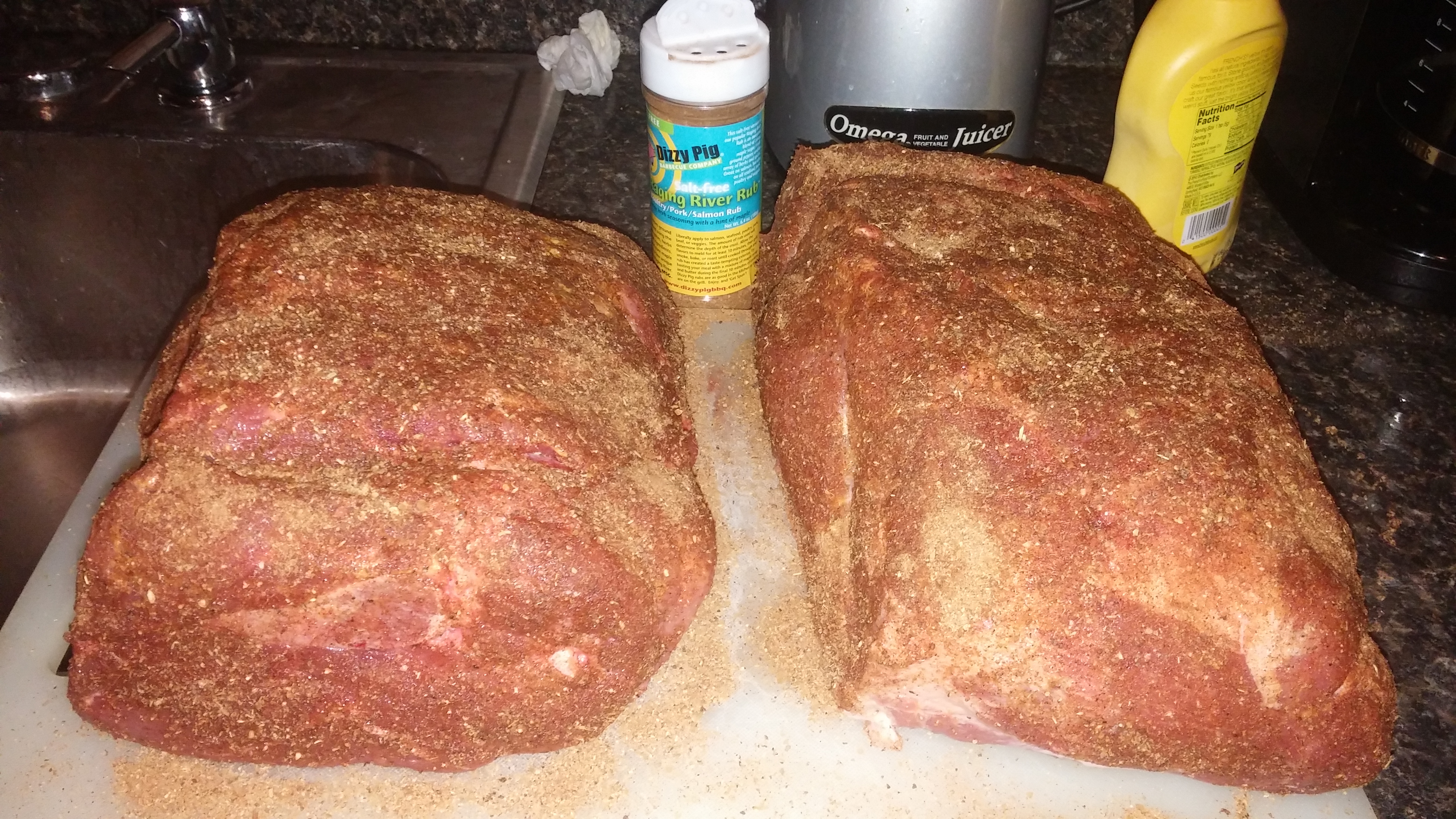 So this is my first over nighter and I'm a little nervous, but pretty confident it'll work out just fine as I've had nothing but success on my pork cooks so far (3 successful rib cooks and 2 successful butts). Tonight around 10 or 11 I'll throw on the two 8# butts, both rubbed with DP dust, at a target temp of 250. I'm hoping they will be done tomorrow around 10am so I can wrap em and toss in the cooler, then pull em and serve to the 4 bros I have coming over for noon kickoff (fantasy football championship). At that point I'll kick up the heat to 325-50 and start 1 of 2 consecutive rounds of turbo baby backs (3 racks each, one right after the other). If all goes as planned it should be a full days worth of bromance, cursing at the flat screen and delicious pork. I'd love for this to go as planned, and don't see any reason why it shouldn't as long as I've got an egg full of lump to begin with and the temp doesn't run away on me. If there is anything overly noobish that I'm overlooking on this 18 hour egg sesh, please yell at me. Fwiw I'll be using Dizzy Pig dust for rub and Blues Hog sauce and the egg will be loaded with bge lump and Apple chunks, and the temp will be monitored by the Mav 732. Any feedback is kindly appreciated, and thanks for taking the time time read my post. Will update throughout tomorrow with pics.