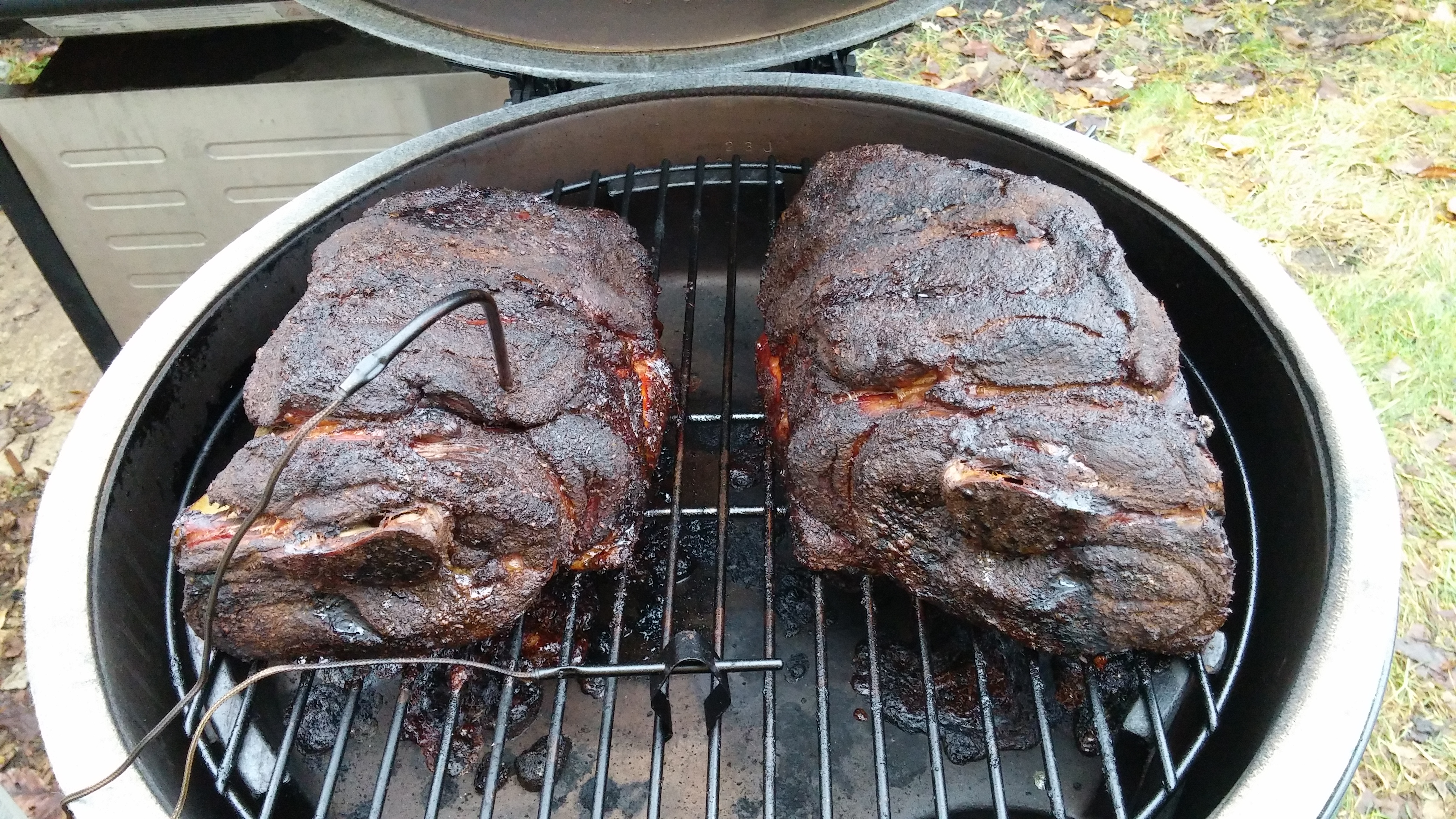 • Nice to wake up first thing to this sight. It's about 10:30am and the butts have been in for 14.5 hrs. Temp sunk down to 225 on the dot around 1am and stayed there all night, and the IT is now at 190. Home stretch!