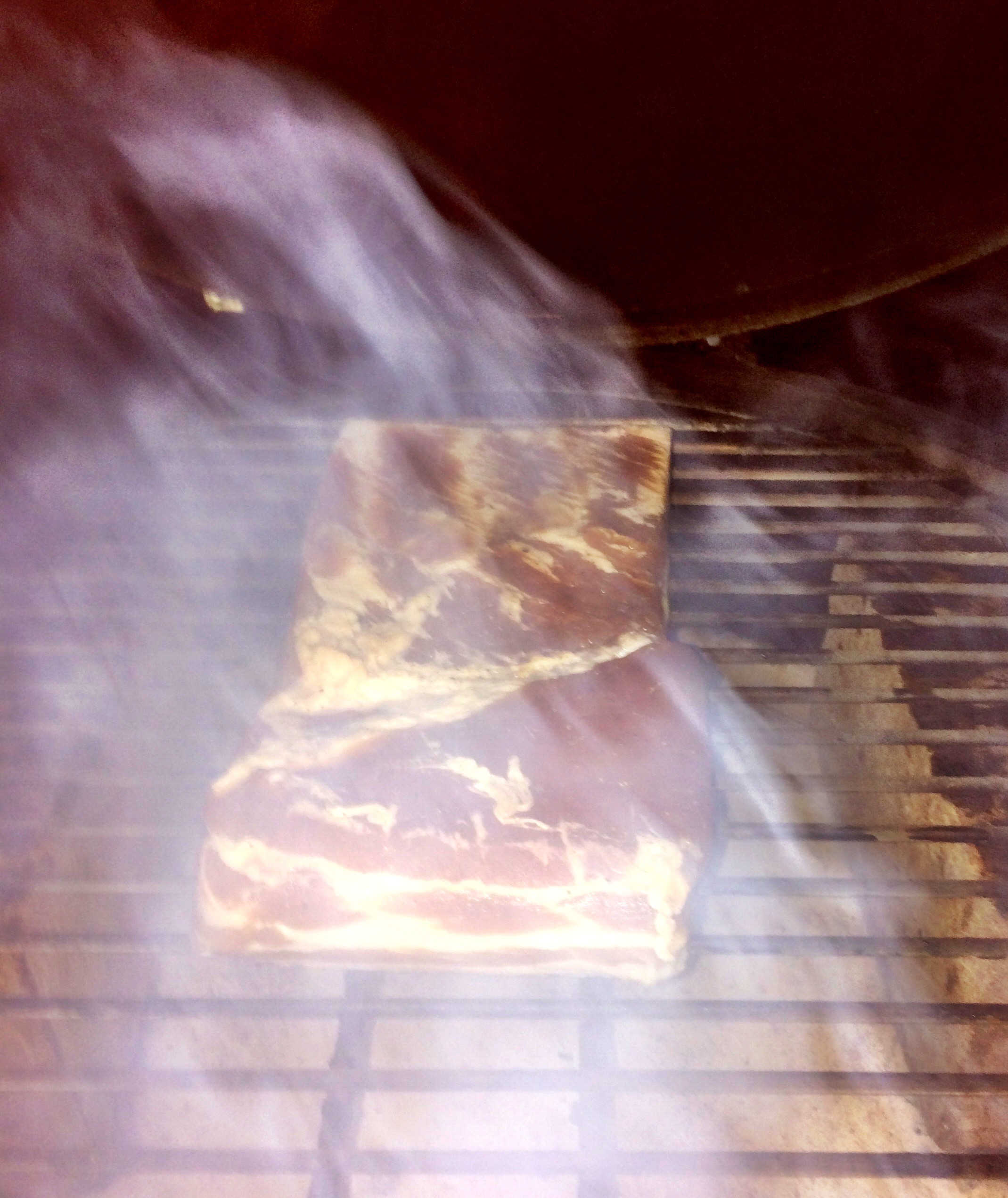 @tarheelmatt you can hot smoke too. No need to buy more stuff. Smoke on the egg to IT 150. Them fridge or near freeze and slice. Fry it up. Goodness.