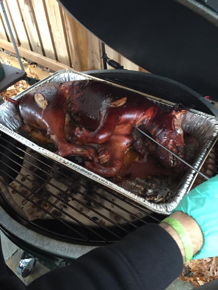 Hi folks! I'm a brand new egghead and loving it. Have had my XL BGE for about a month. So far I've smoked baby back ribs, wings, steaks and, most recently, the suckling pig pictured below. Looking forward to learning from everyone's experiences!