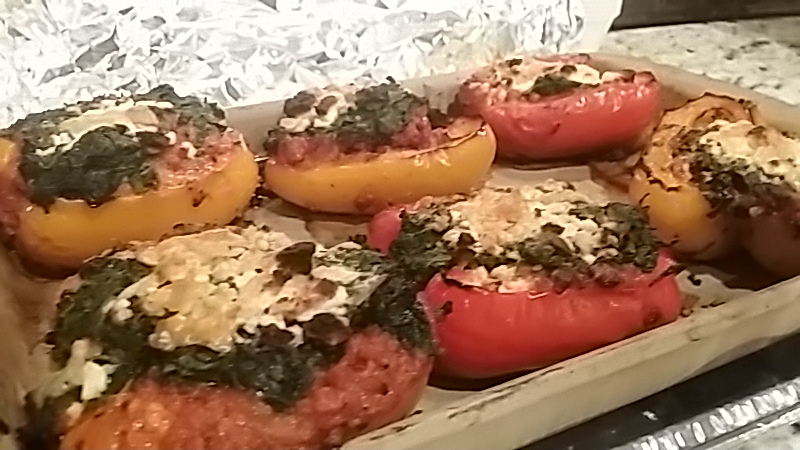 @jls9595 ...sautéed onion and garlic, added the Italian sausage, spices and parmesean. ..I forgot to add the spinach to the mix so I just topped the peppers with it and some feta.Green egg, dead animal and alcohol. The "Boro".. TN