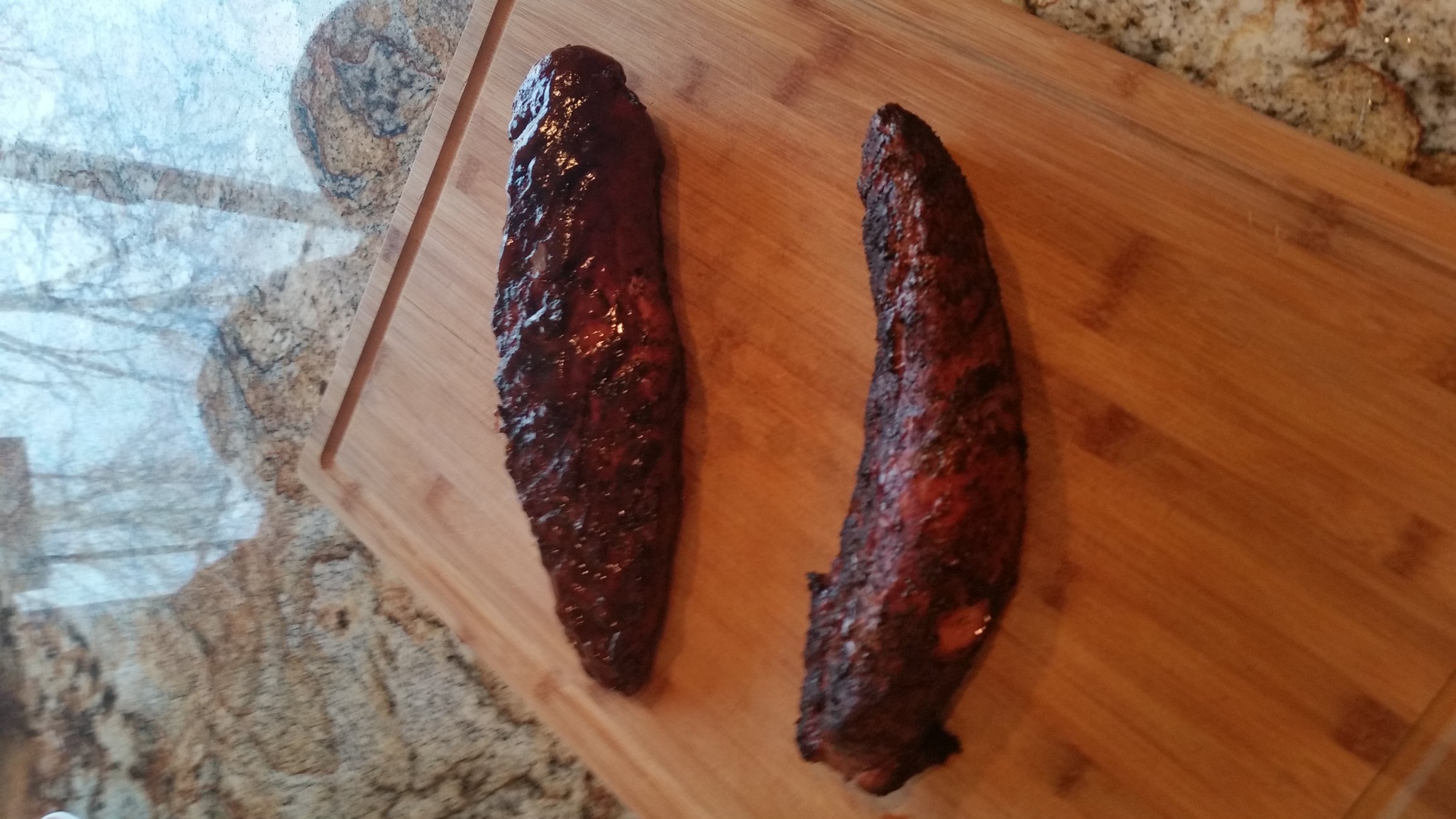 Thanks @fergi. I was gonna tie em up together like u mentioned but ran out of time and didn't want to mess with it. Pretty happy the way these cooked. Wife and daughter like theirs well done and I prefer medium well. Egg was rolling about 425. Went raised direct just below felt. They were on about 35 minutes and I pulled at about 145 IT in the thickest part.  Hope this helps.