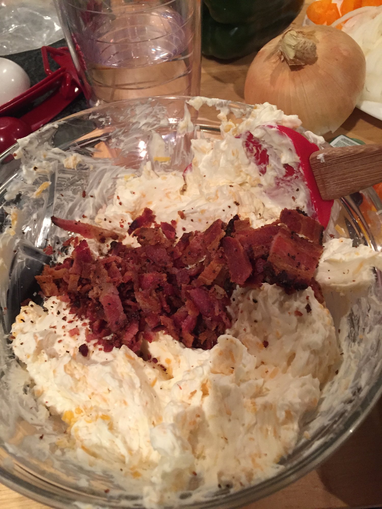 Made up the main mixture (cream cheese, sharp cheddar, and bacon).