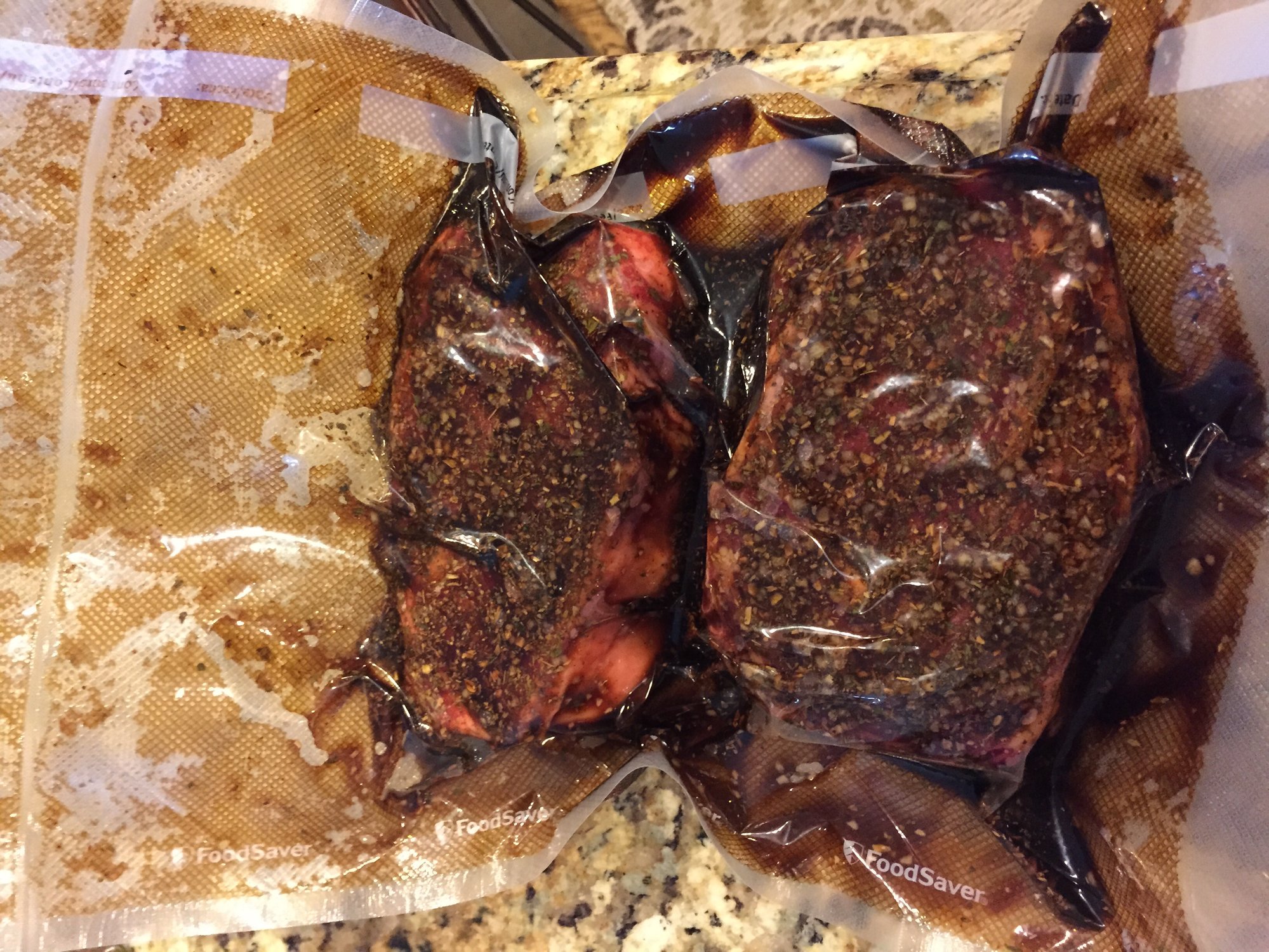 First cook at the new casa. Did a quick marinate on some gorgeous ribeyes from the Kroger deli.