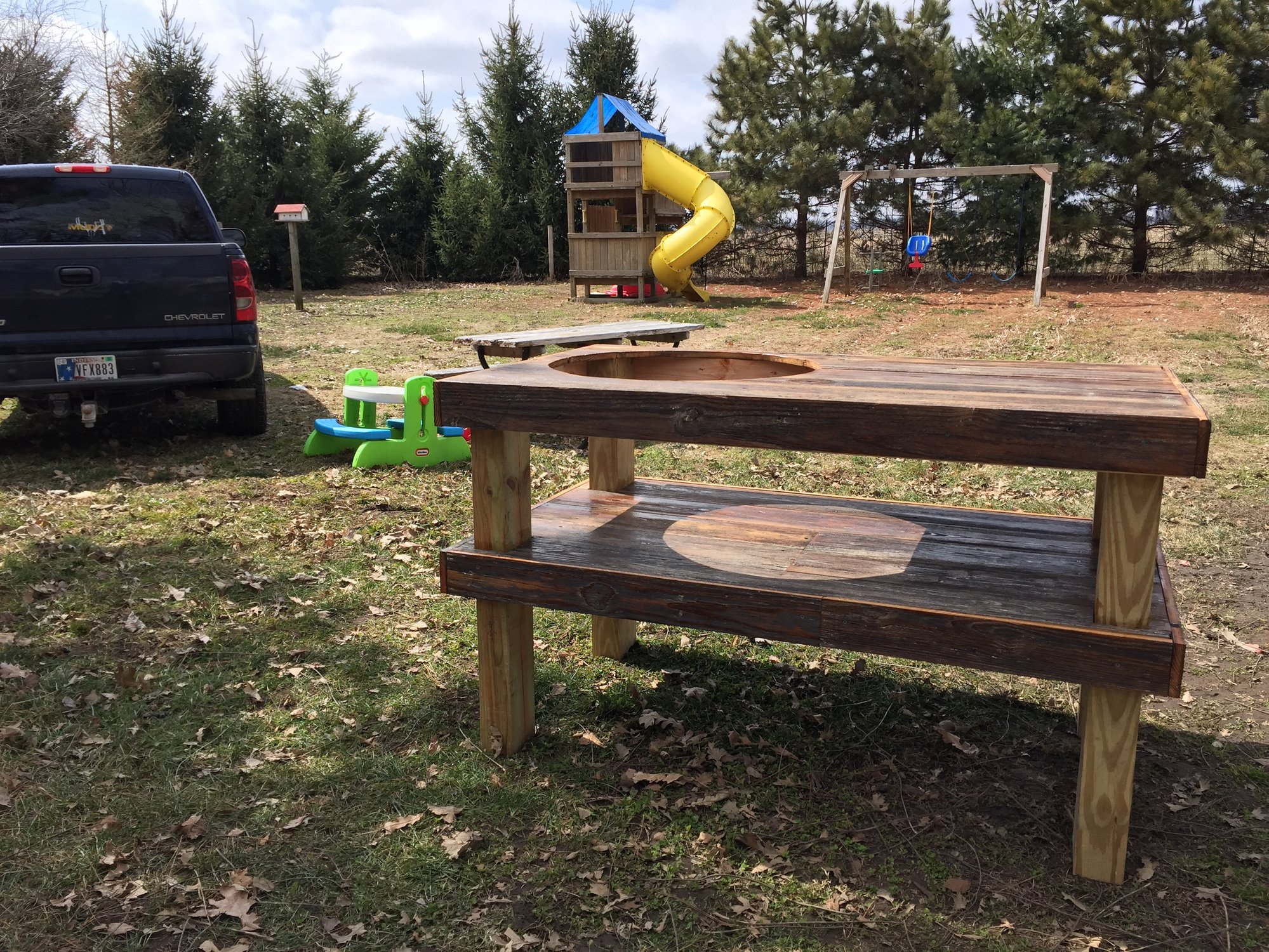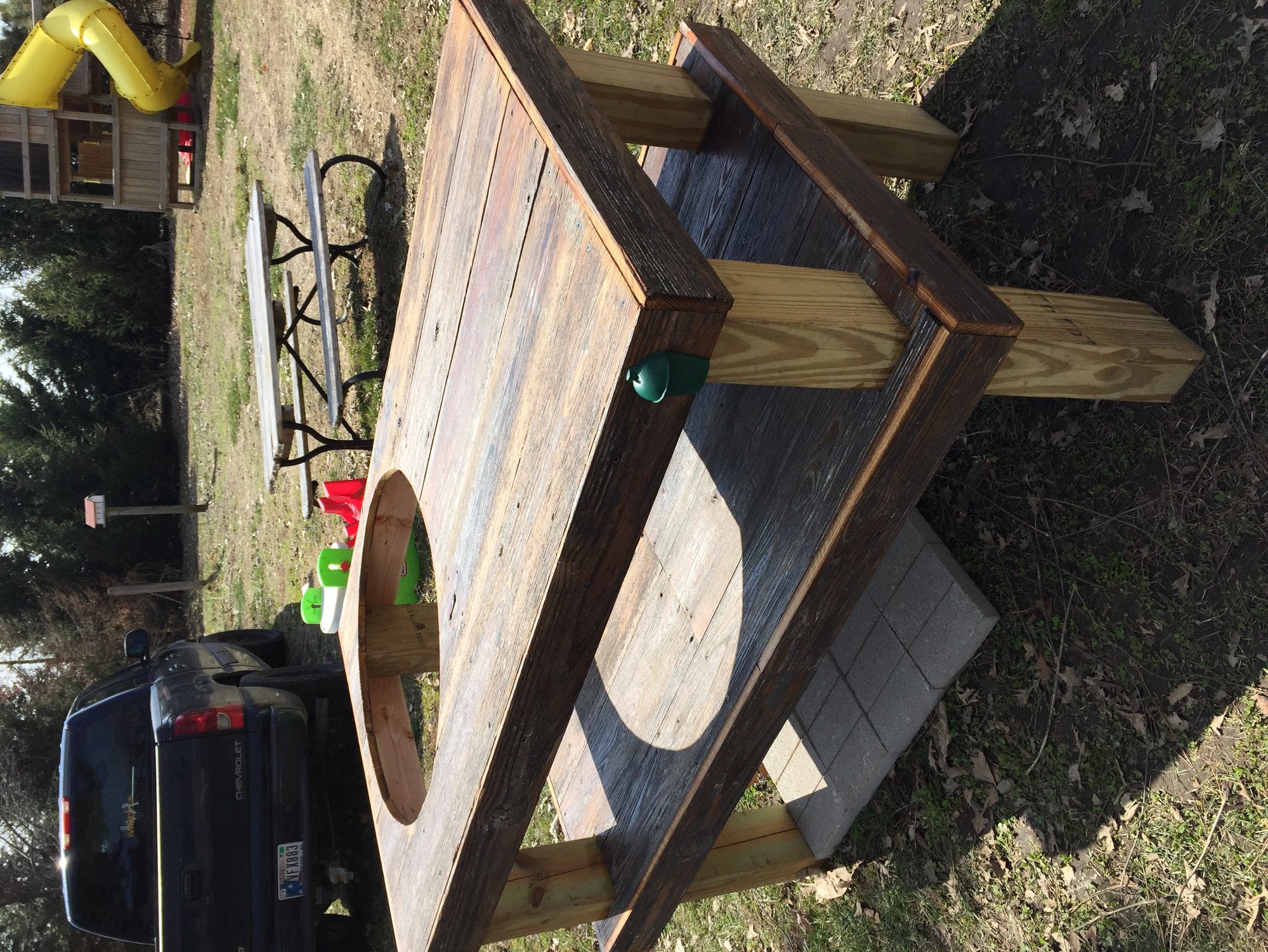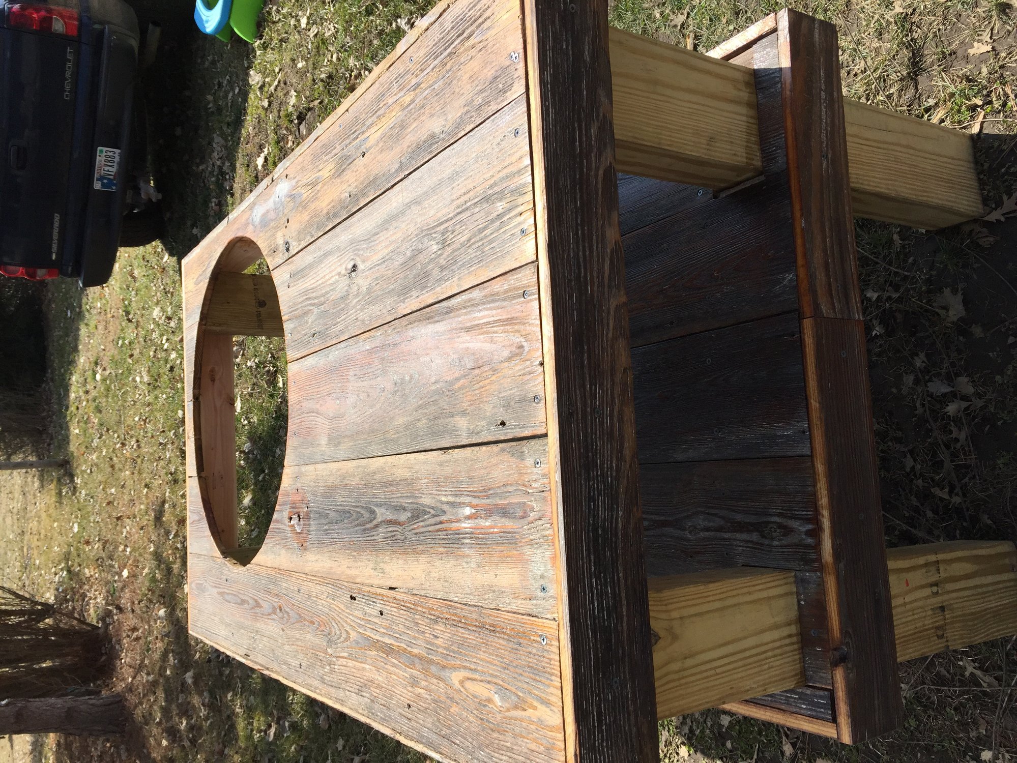Simple design nothin crazy. I had a bunch of barn siding and 2 treated 4x6's. I'm think about staining the legs but I wanna see what it looks like after it weathers a little. Just got done applying a teak oil finish. Maybe put the xl in tomorrow? I got trick some people into "stopping" by for a beer.