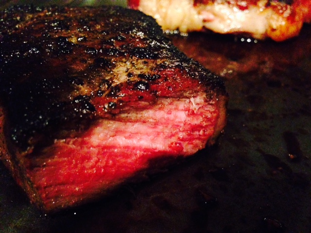 6) Sear on hot cast iron griddle 90 secs a side, pull (*optional - add butter and fresh herbs . . baste during sear)
