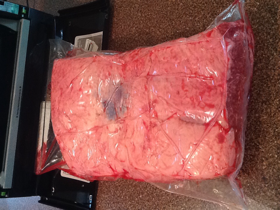 Here's my nearly 22 lbs initial weight boneless rib-eye sub-primal.  I took the photo a few minutes ago.  I'm shooting for 45 days which will be April 21.