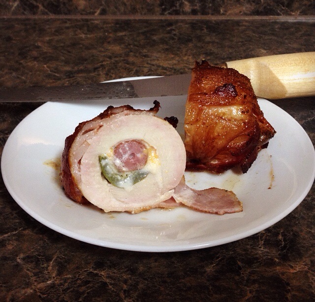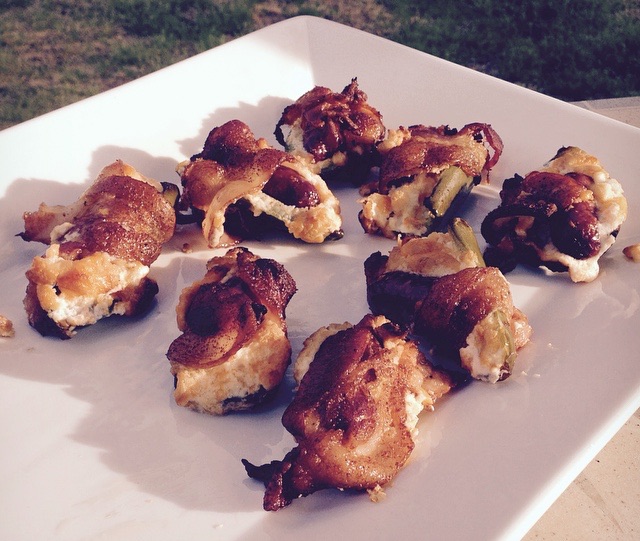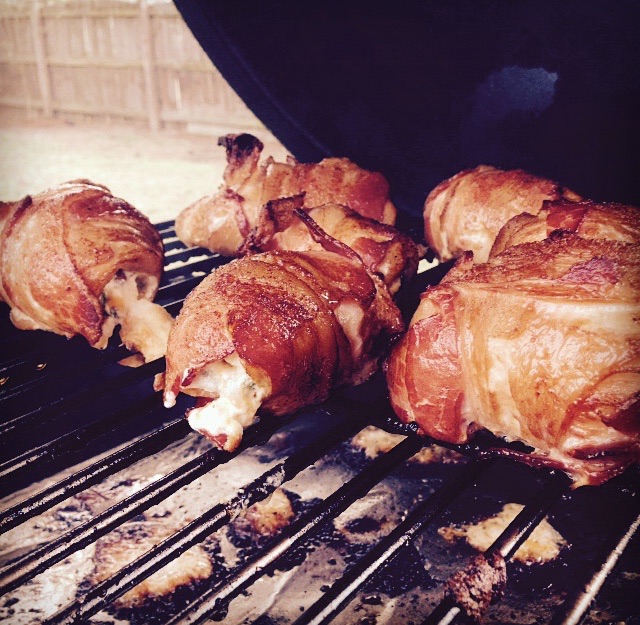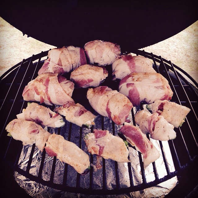 Wife's on call at work tonight. That meant Bacon, Meat, Bacon, Cheese, Jalapeños, Bacon, Lil Smokies and more Bacon was in store. Chicken bombs and ABT's. Man night!!