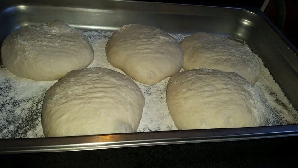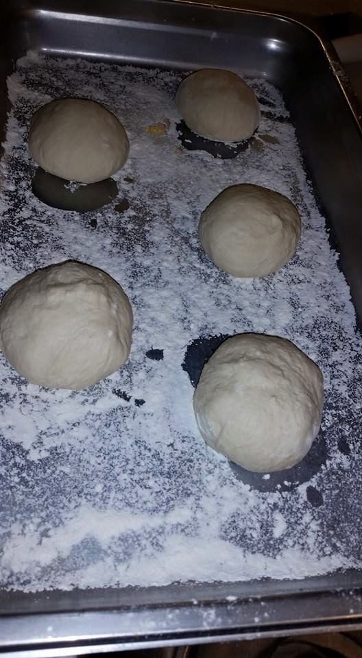 3 step - take out the dough about 3 hours before cook it, make a portions and kneed each ones in a bowl. Put the bowls in a floured pan and cover with wet towel and place these bowls in a worm place again. They need to double in size again.
