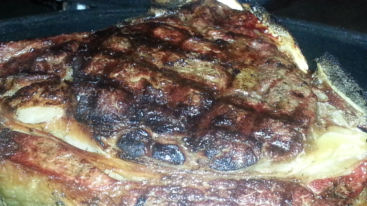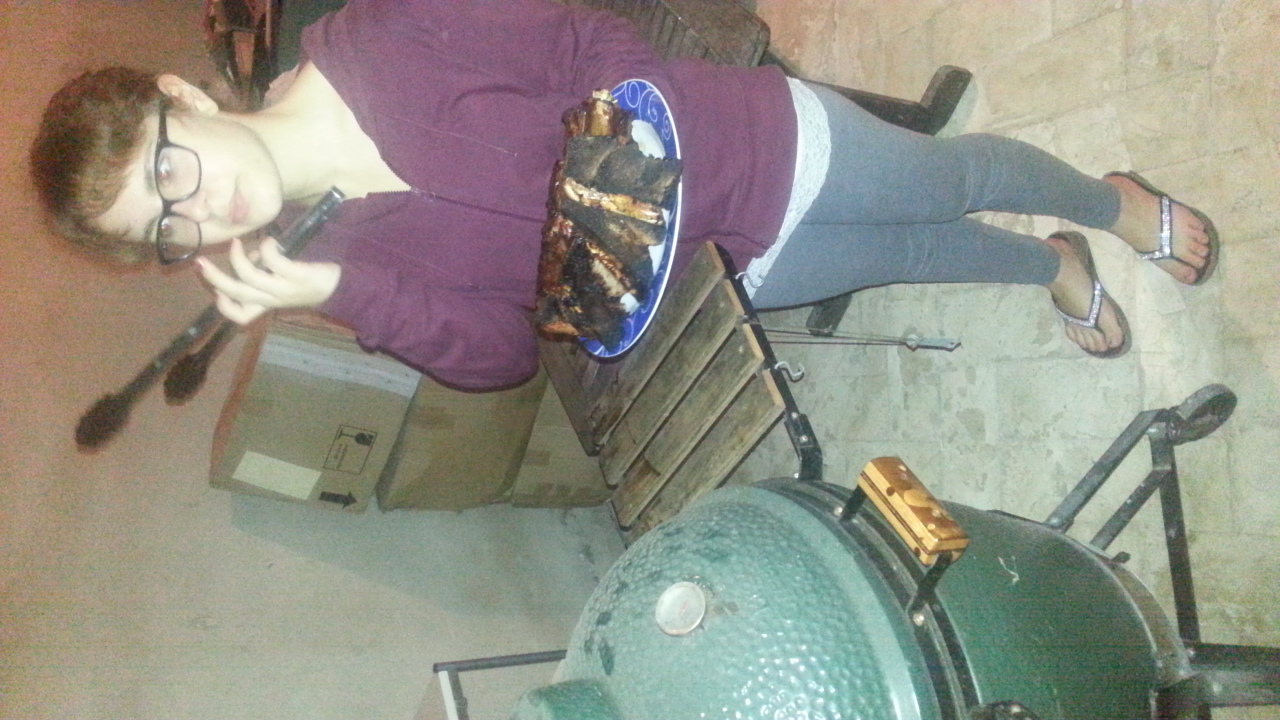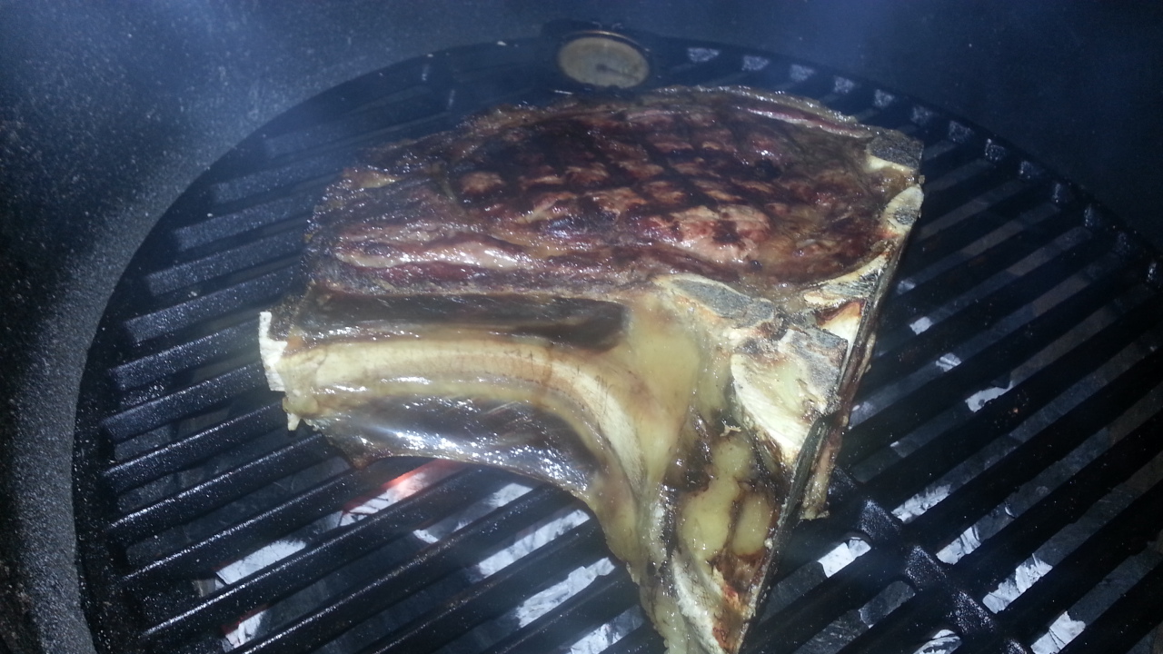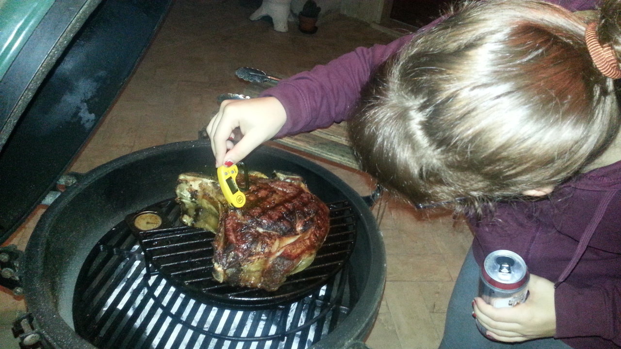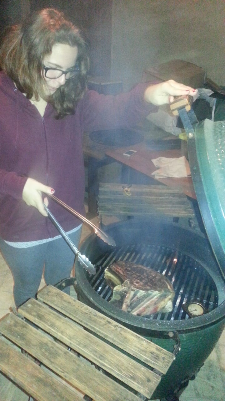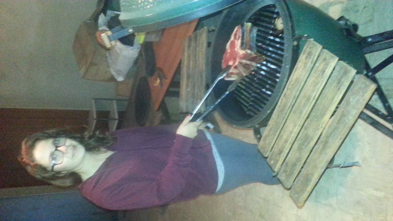 Her first cook on an EGG. Close to 6 pounds steak. At this time she was 15 yo.