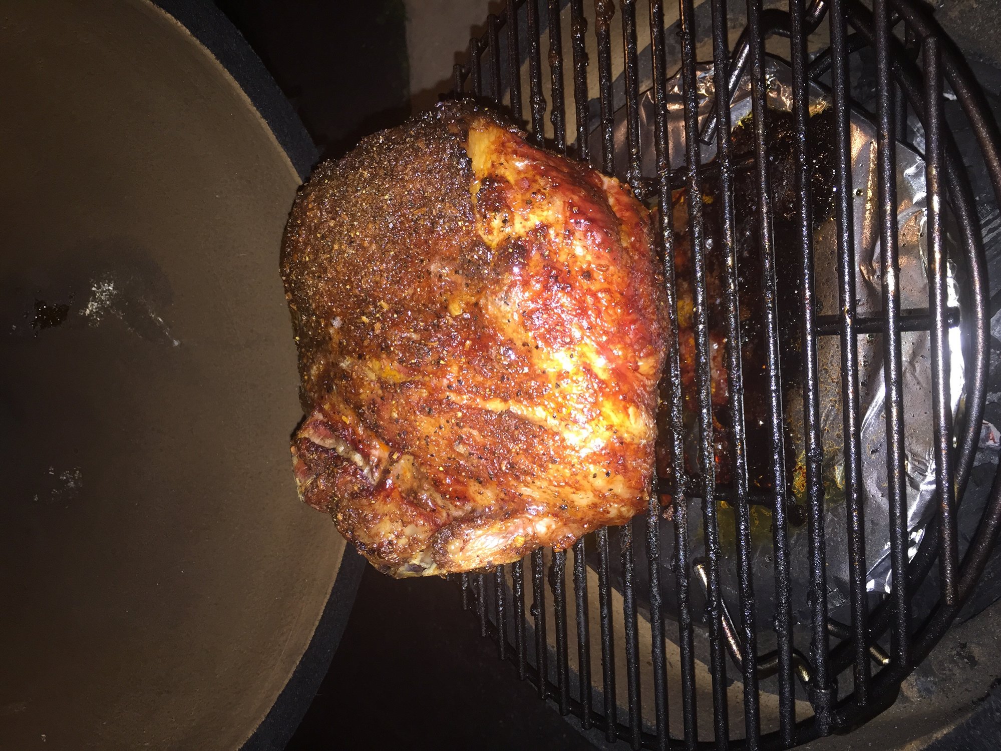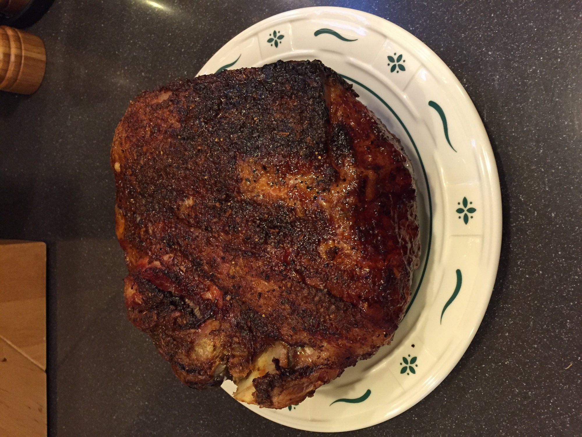 Ok so the other day Walmart had a small pork picnic marked down to $6.5? I decided to grab it and try it on the "little egg" as my sons calls it. Here are a few pics of it going on. Comments