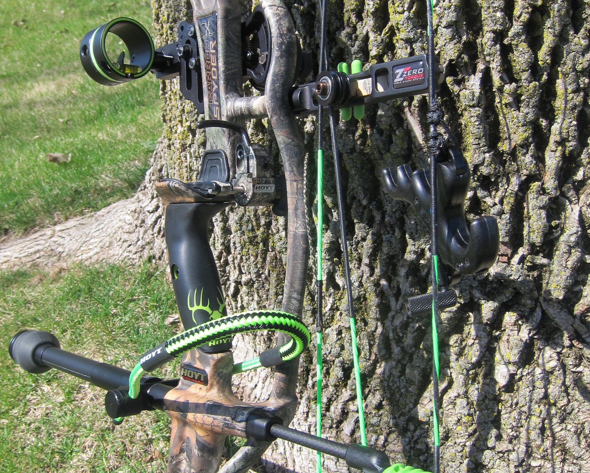 Hoyt QAD camo rest, Hoyt quiver, Bee Stinger stabilizer. HHA single pin slider sight.