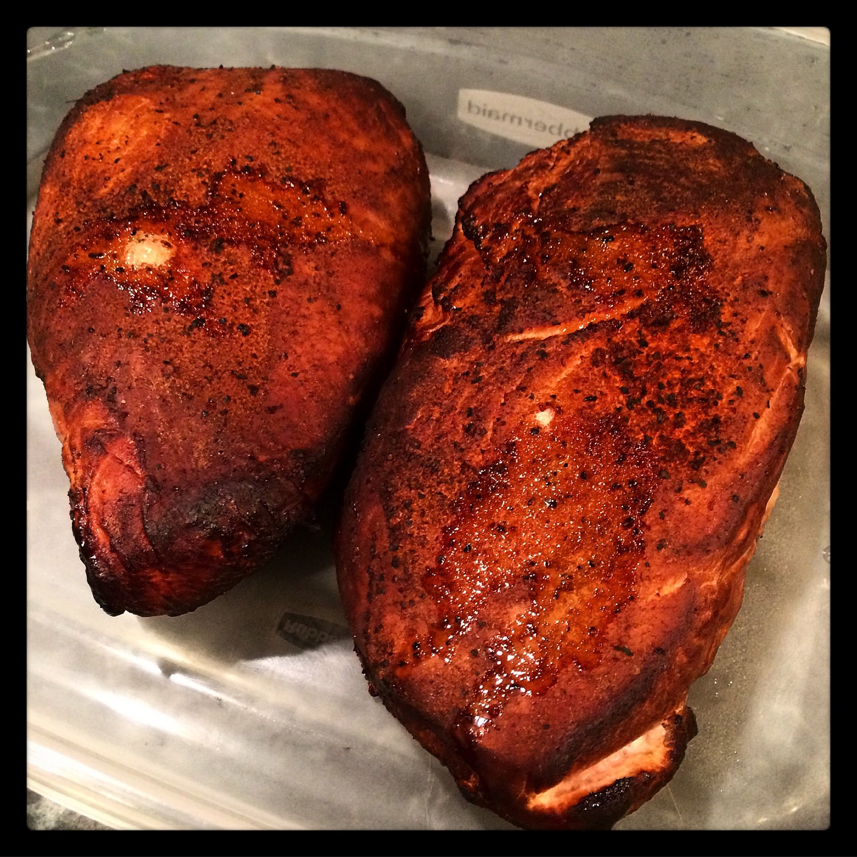 Said F it... I want to play along. Found these frozen turkey breasts in the freezer. Little @MeatChurch Fajita rub and one indirect with hickory
