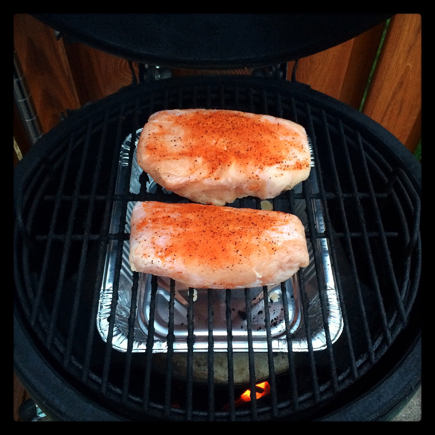 Heating up the egg and thawing some fillets from the back of the freezerChicago, IL - Large and Small BGE - Weber Gasser and Kettle