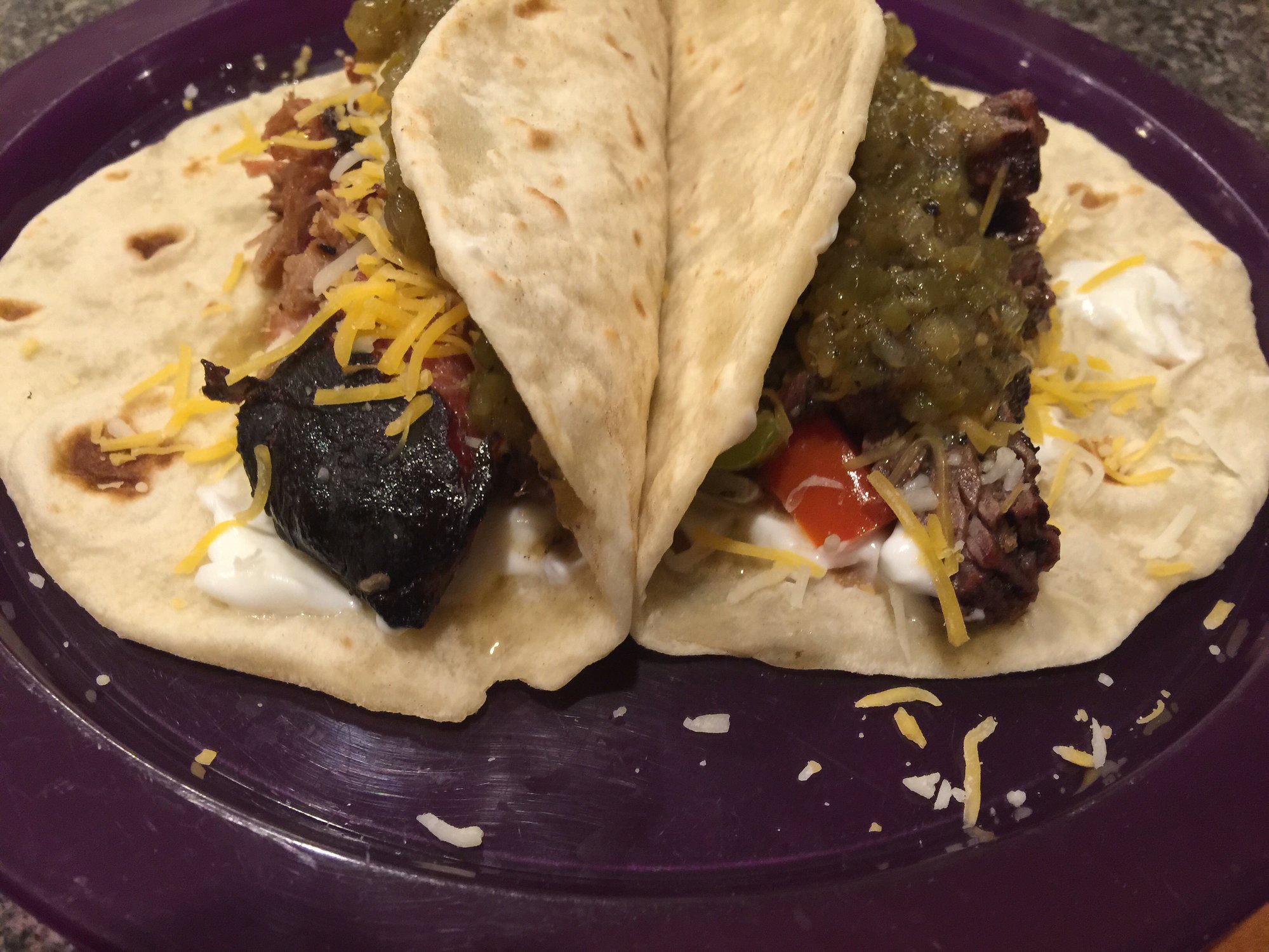 Forgot to get a picture Friday night so there's a picture of the leftovers from tonight along with a smoked pork taco from the butt cooked yesterday.