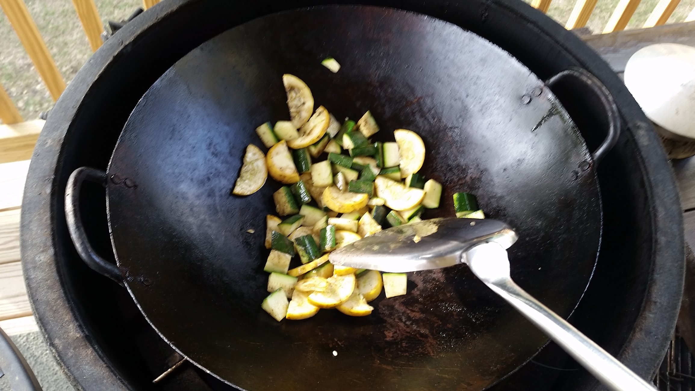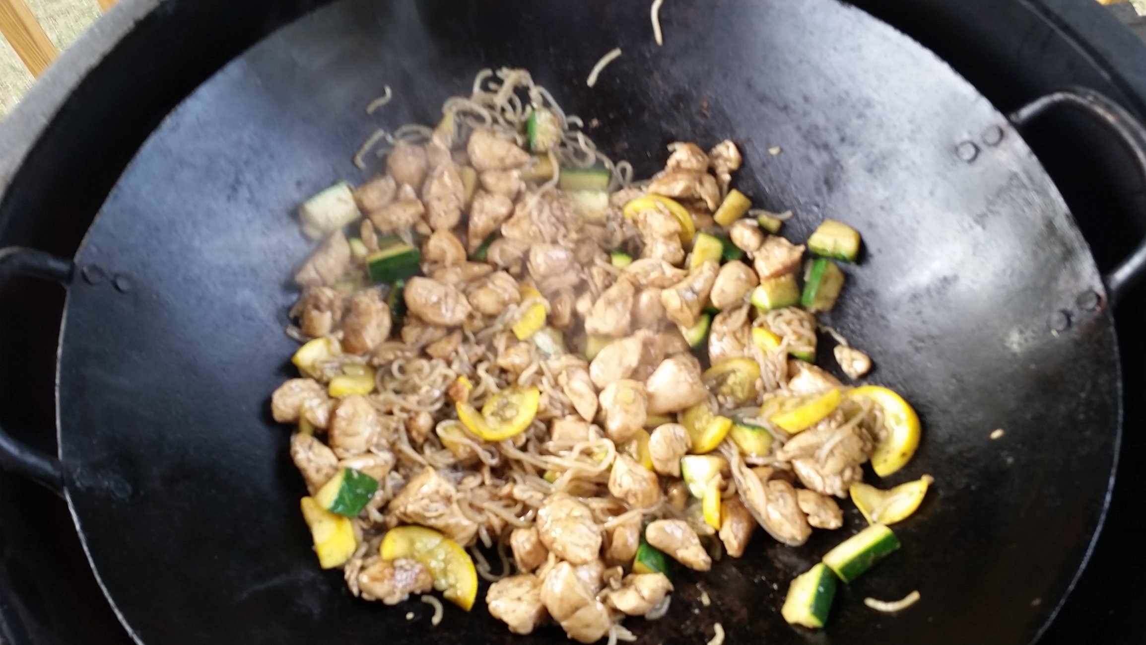 Been awhile since I've used the wok, but cleaned it up a little bit last night and fired the egg up. Teriyaki chicken, shirataki noodles, squash and zucchini. Turned out good! Sorry for the blurry pics - hard to wok and take pics at the same time =)