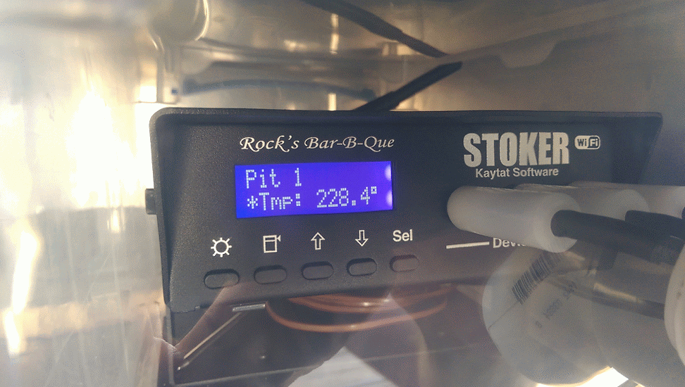 Stoker after 40 minutes of smoking. Running with RW and a large chunk of Pecan & Black Cherry. Pit dialed in to 235℉. The butt was at -6℉ when it first went on.