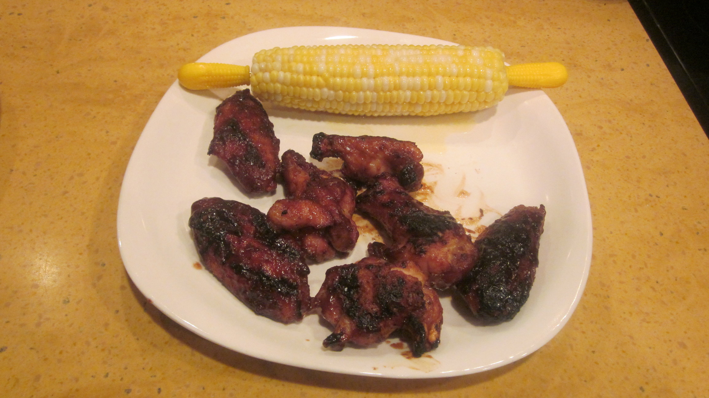 I had a bag of small wings in my freezer and decided to give them a shot. Dusted with Tsunami Spin and cooked raised indirect at 350 for 40 minutes. Pulled the wings, sauced them, and put them back on raised direct at 450 for 3 minutes a side. Sauced again right before serving.