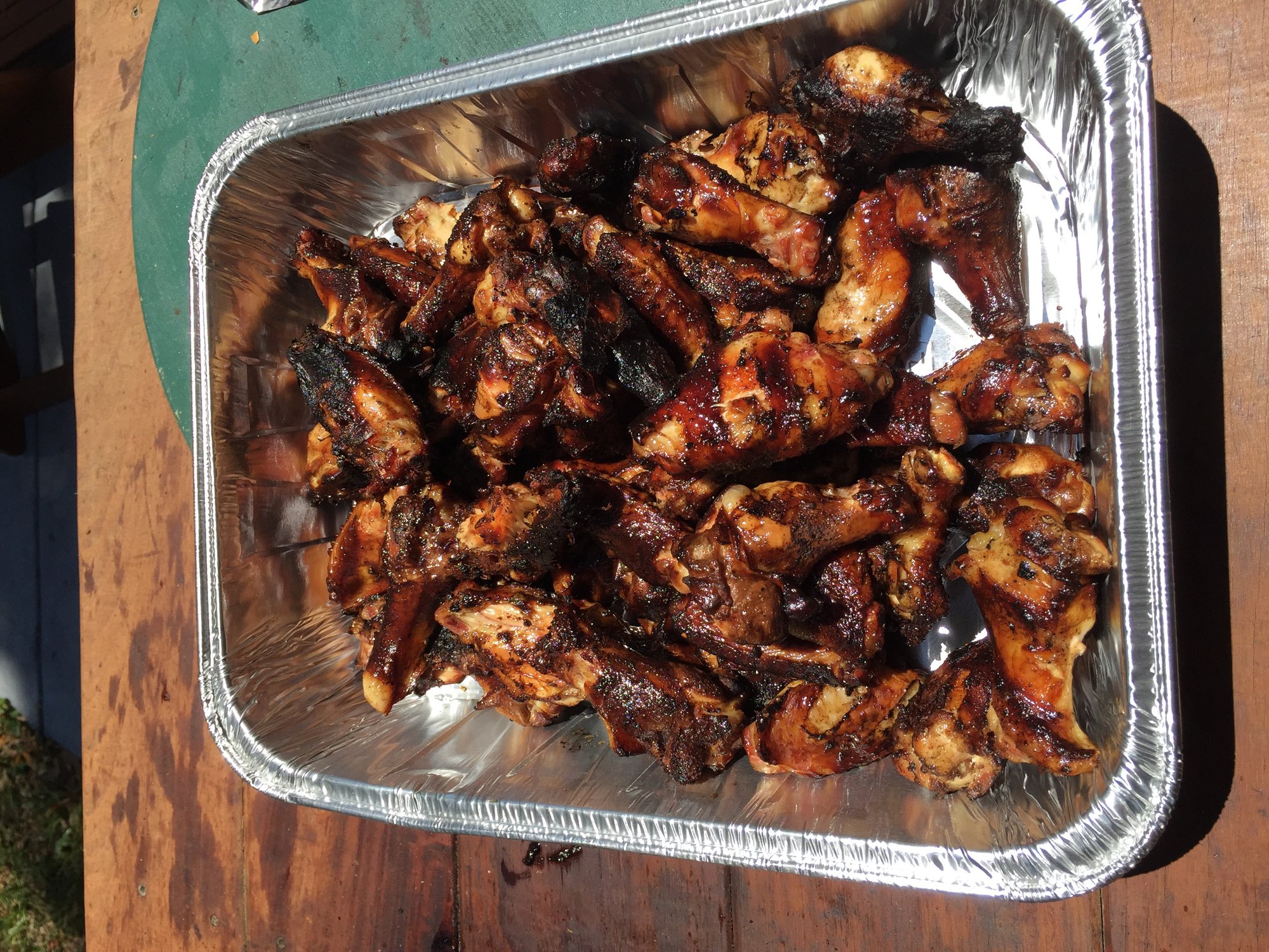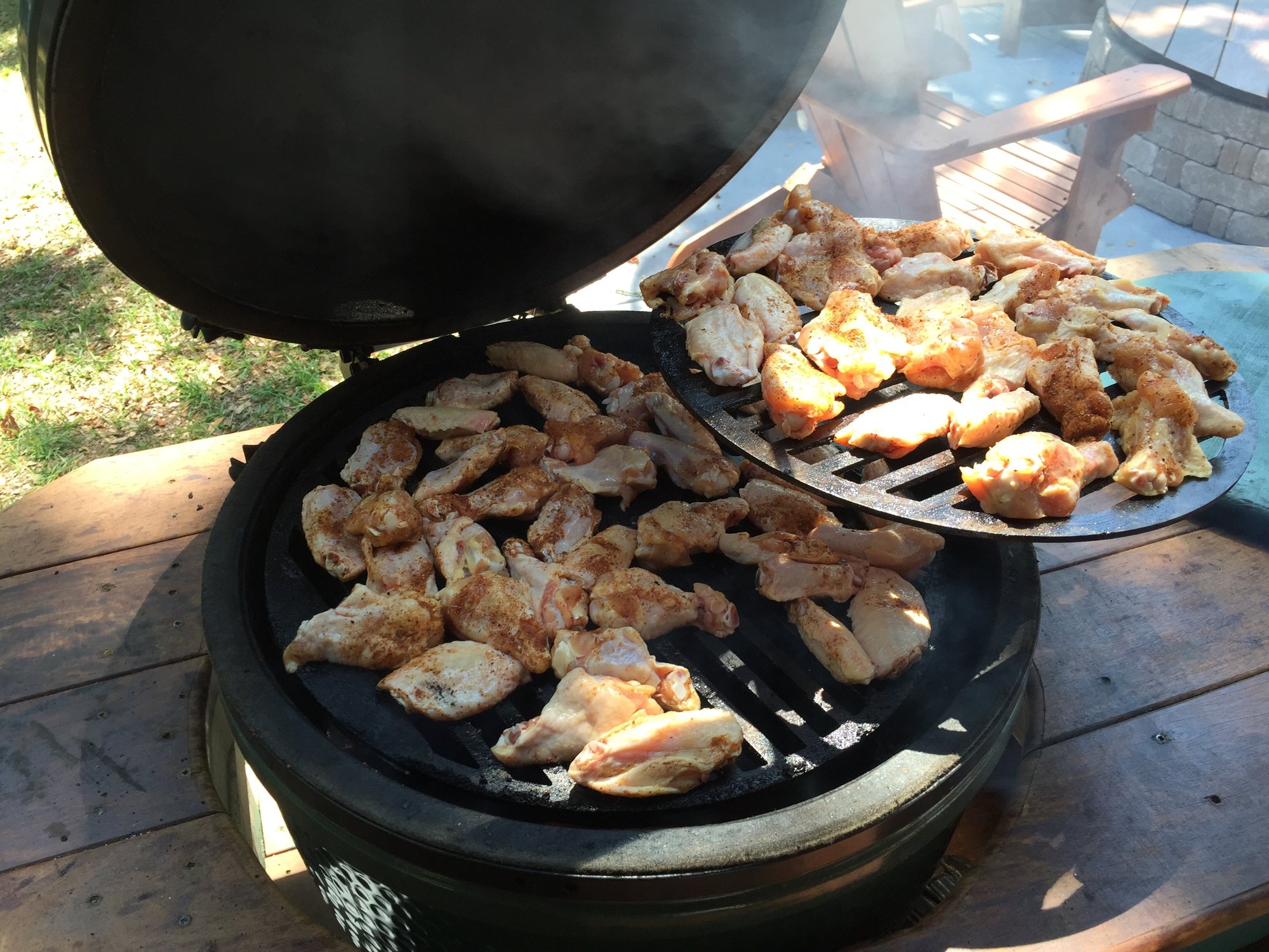 Here got the fire started and wings sprinkled with some whirly bird rub