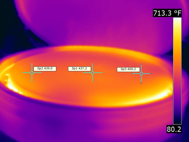 As for thermal imagers, they run from $700 up. At the low end, temp range is limited, and image quality is poor. The pics above were taken with an $8,000 FLIR camera. All you need is an IR Thermometer. Thermoworks has one for $39 that will get you up to 1000 degrees.XLBGE, Small BGE, Homebrew and GuitarsRochester, NY -