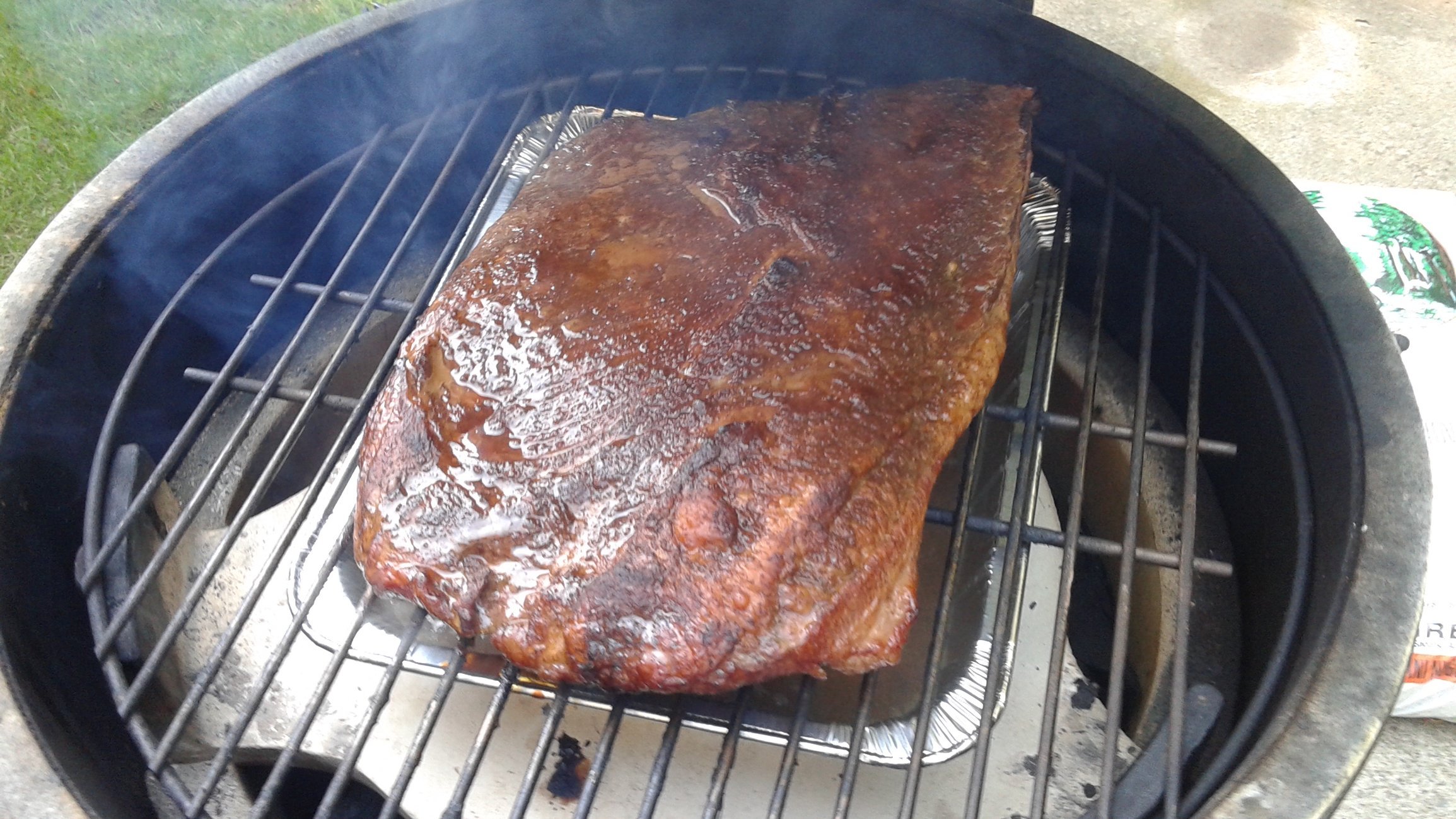 Today's project. Picked up a 5# flat at Costco a few days ago. Put some coffee rub on it and let it sit. Now it's on the egg at 225. I've done brisket on other grills before, but this is the first on the Egg.