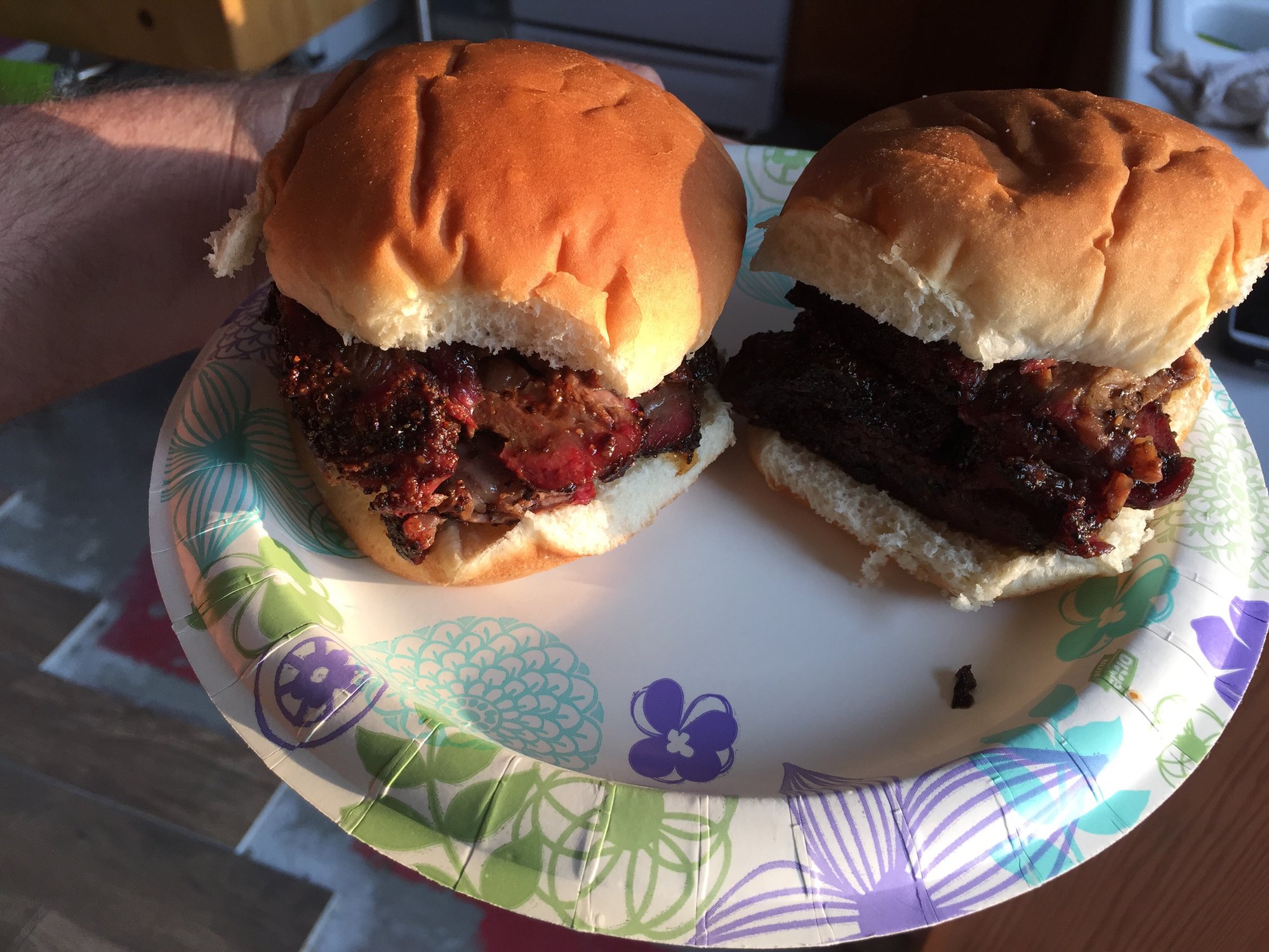 Sunday night is looking better than the morning did. Chuck roasts finished in time for dinner so I made a couple sandwiches.