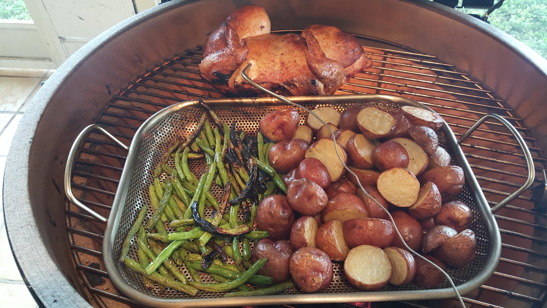 First full dinner cook on the XL: Spatchcock chicken and veggies.