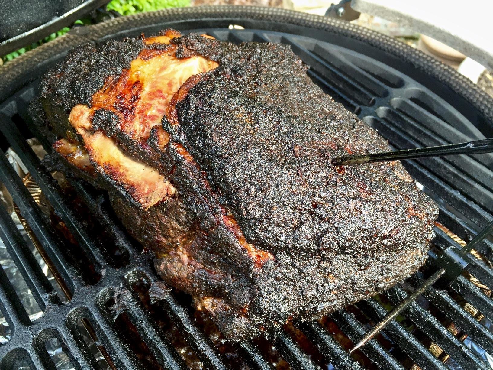 Temp jumped from 194° to 196°. Opened the dome and this puppy is done... probed like "buttah", literally. Wrapped it in butcher paper & towel then placed in a cooler. Dinner at 8:30! Nom... nom... nom.