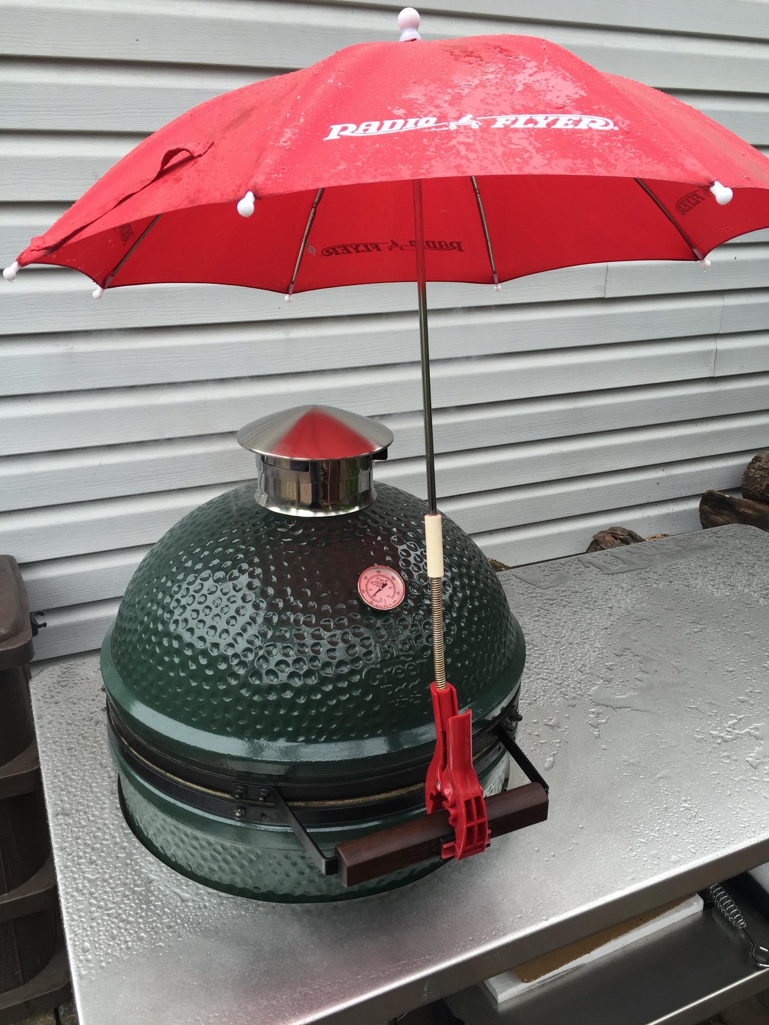 call me a worry wart, but that umbrella has NO business that close to the opening of a hot egg, let alone that close to your home. Know what a fire ball an egg can send out? Sorry man...just trying to protect you since if you have a Radio Flyer that might mean you also have a small child close by.