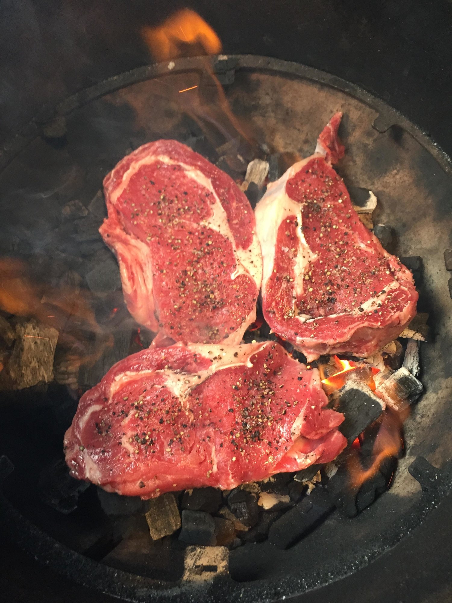 They look great. I've done it one other time before and it was a fun way to grill a steak.XL BGE, LG BGE, and a hunger to grill everything in sight!!!Joe- Strongsville, OH