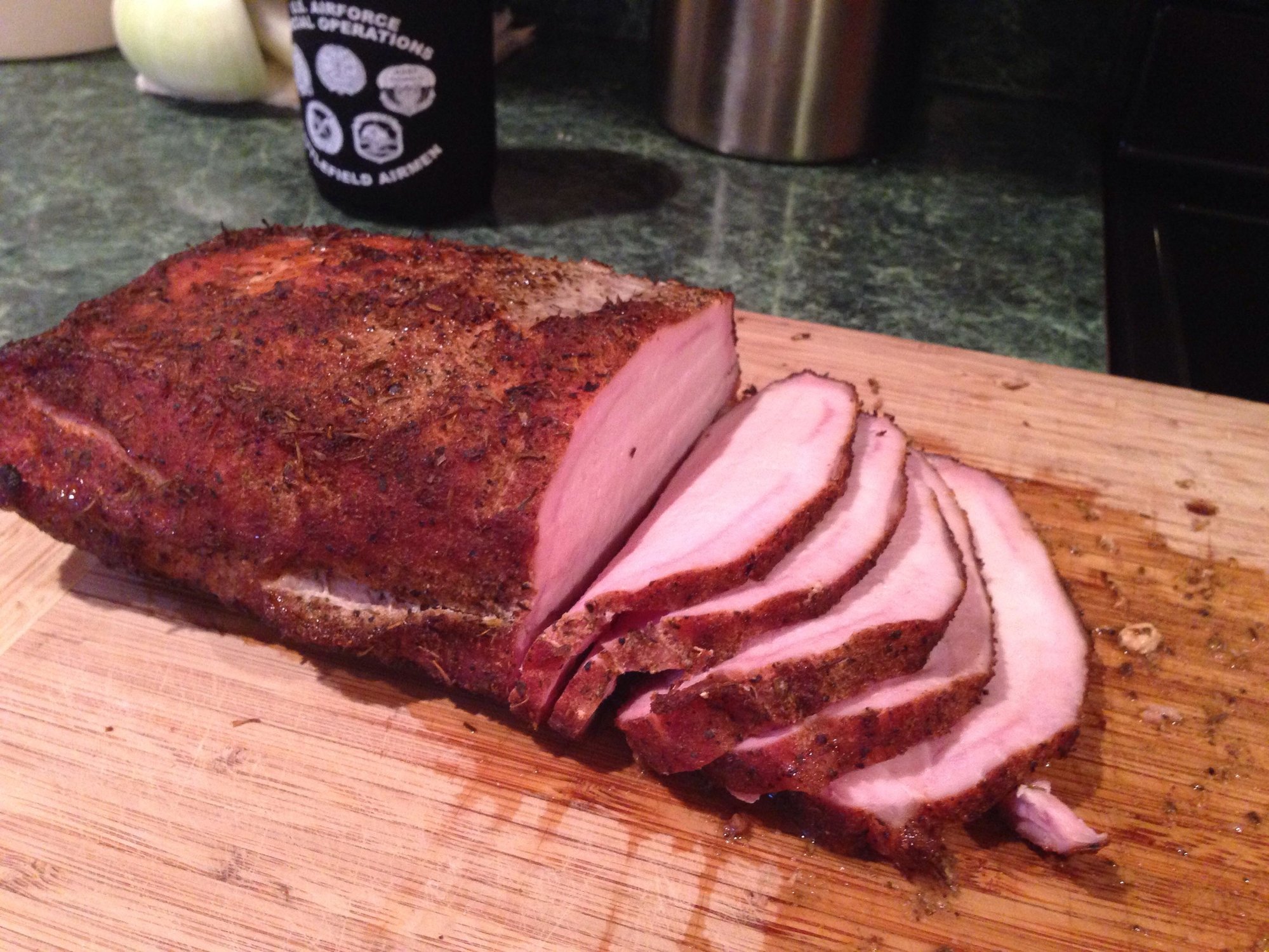 first attemp at a pork loin last night. It turned out perfect. The neighbors loved it.